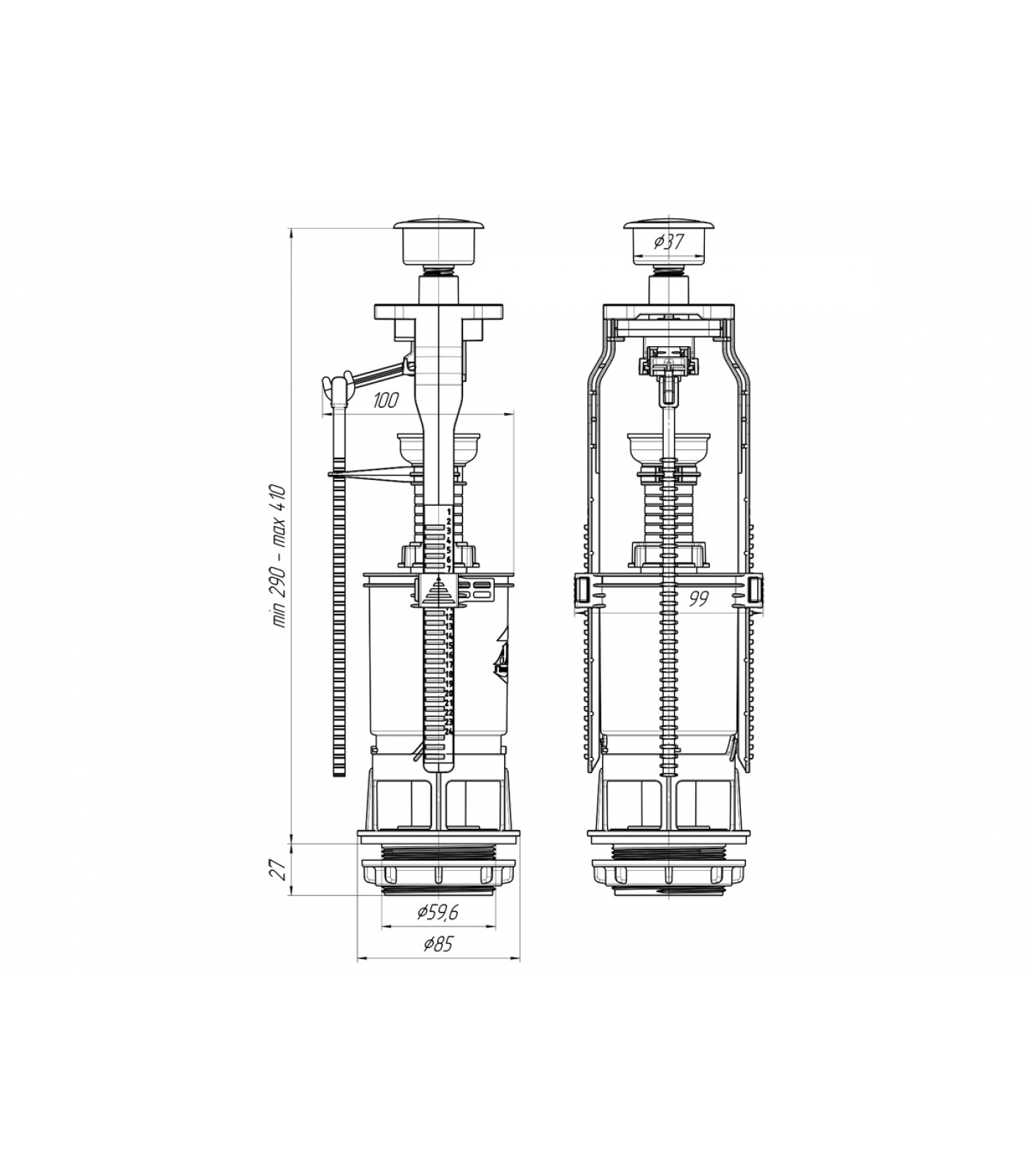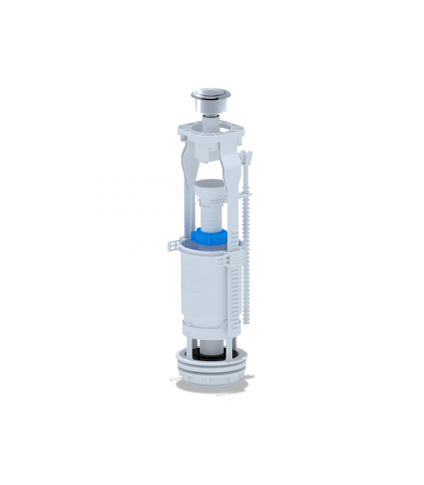 Сливной механизм бачка унитаза АНИ пласт WC7030M эконом, металлизированная кнопка, с одним режимом слива. Регулировка по высоте 290-410 мм. Отверстие для кнопки слива в крышке бачка 40 мм, посадочное отверстие сливной арматуры 60 мм.