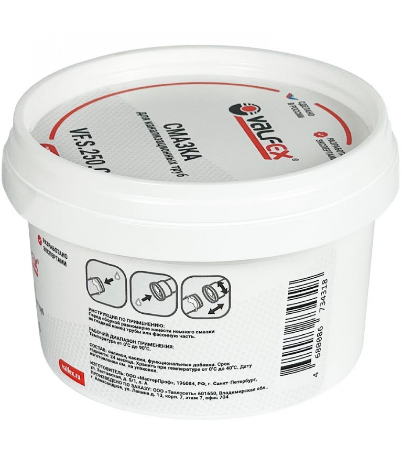 Имеет пастообразную консистенцию, наносится на конец трубы или фитинга непосредственно перед процессом соединения, что уменьшает необходимое усилие для монтажа, обеспечивает подвижность системы в процессе эксплуатации и способствует длительному сохранению механических свойств резинового уплотнения.