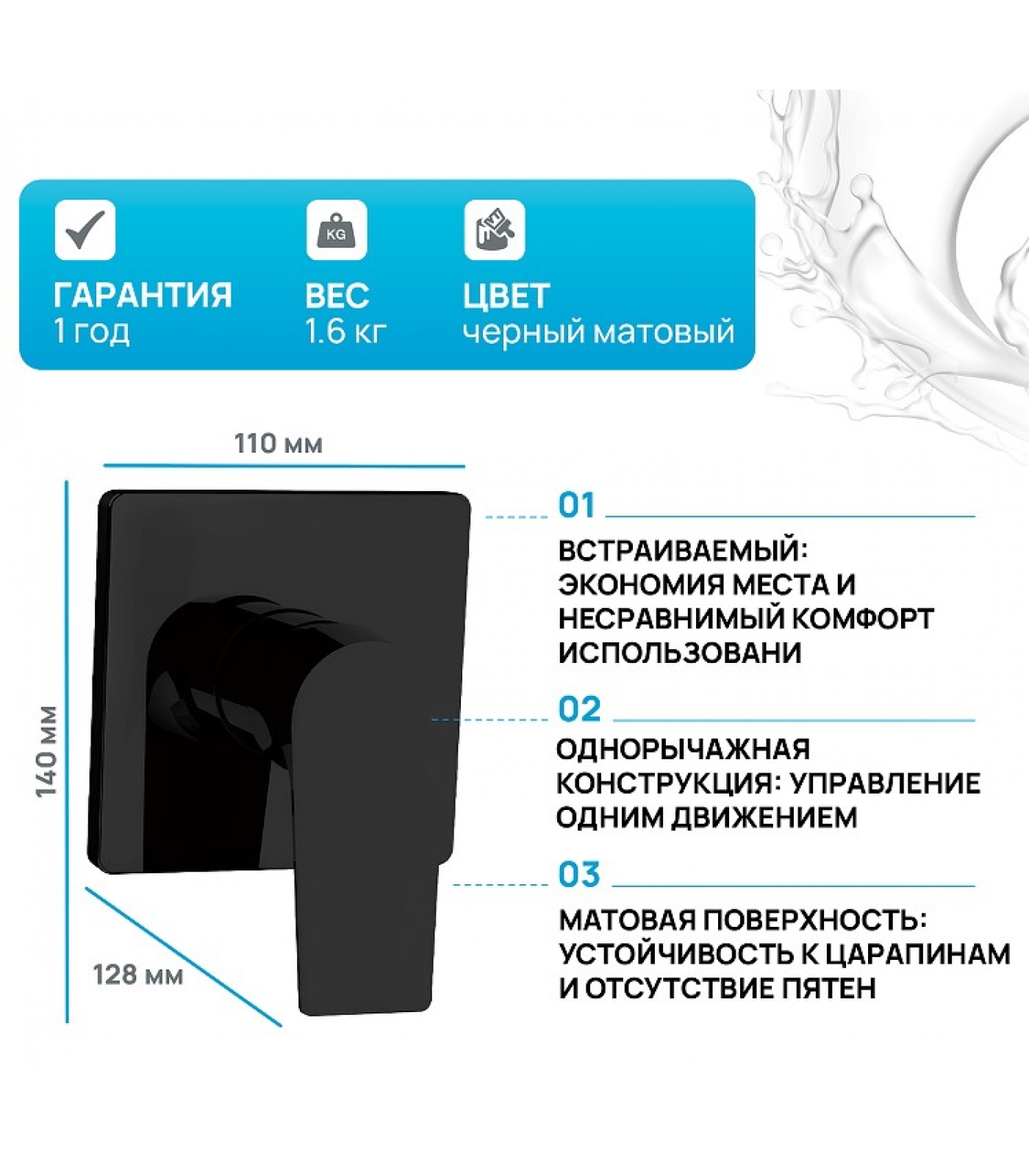 Смеситель Aquanet Static Black AF330-50B встраиваемый с внутренней частью, однорычажный, черный