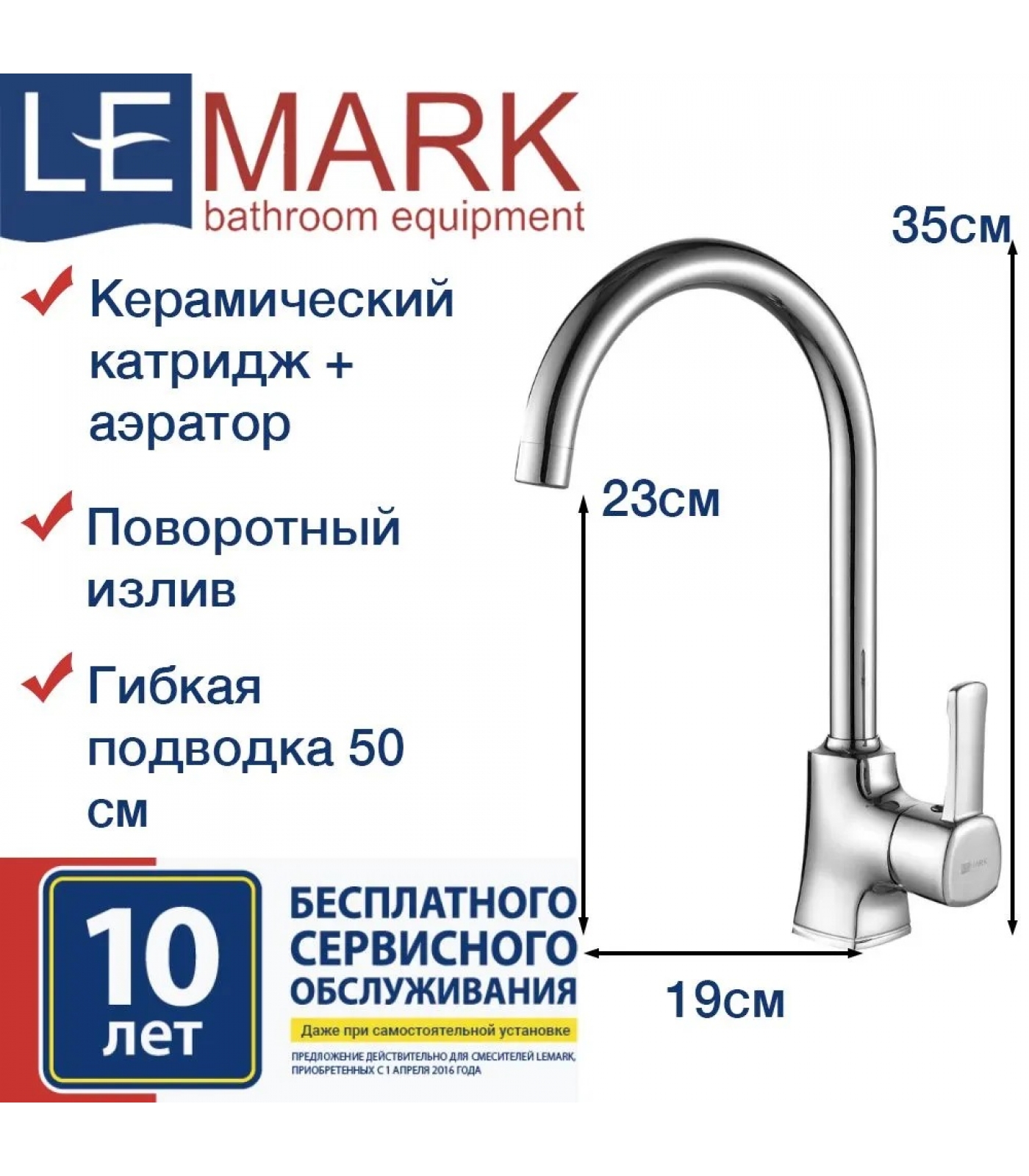 Особенностью смесителей Lemark, является высокий уровень послепродажного обслуживания. Сервисные центры расположены более чем в 150 городах. На всю продукцию Lemark распространяется гарантия 4 года и 10 лет бесплатного сервиса.