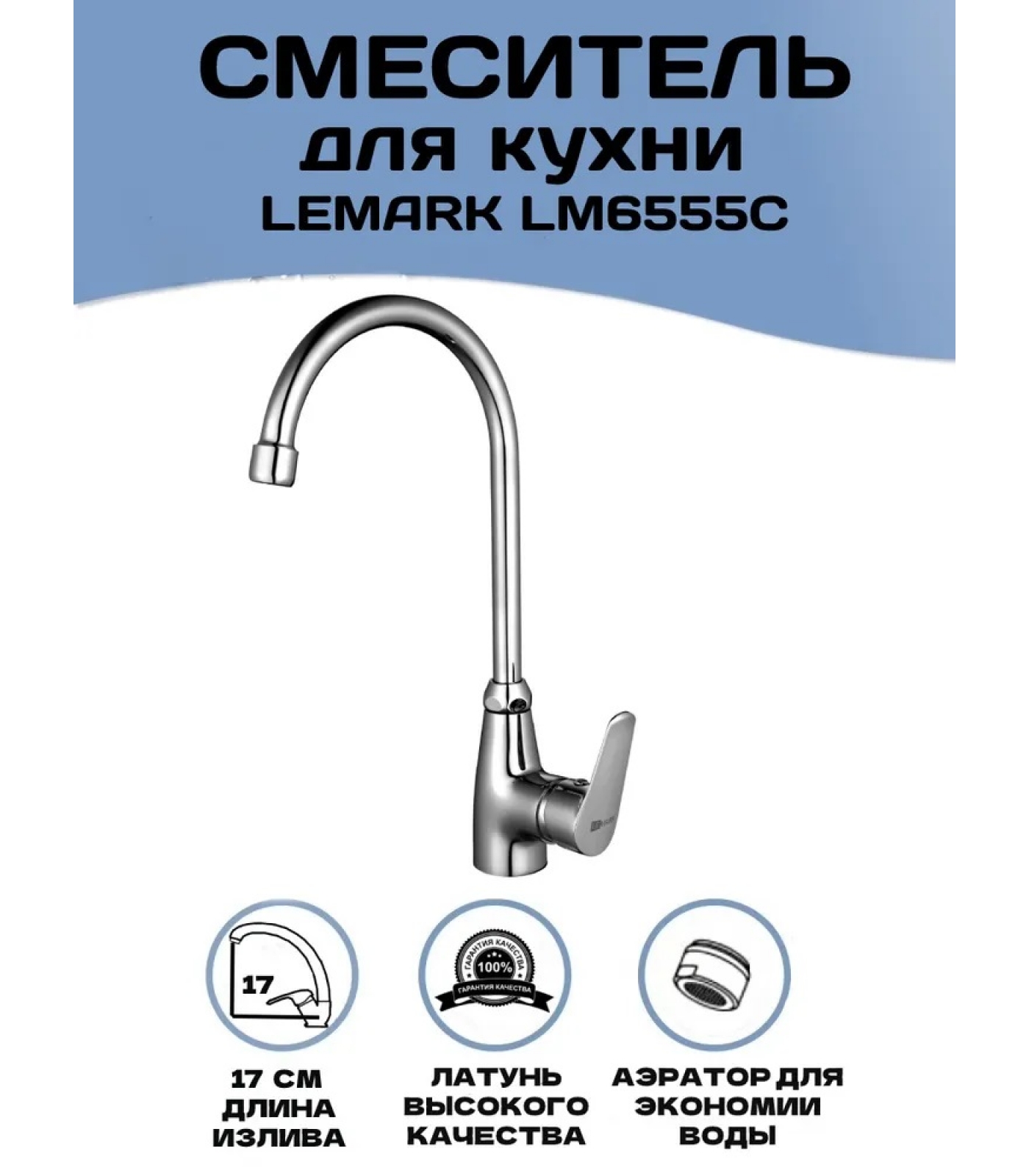 Смеситель для кухни Lemark Partner LM6555C, однорычажный, высокий излив