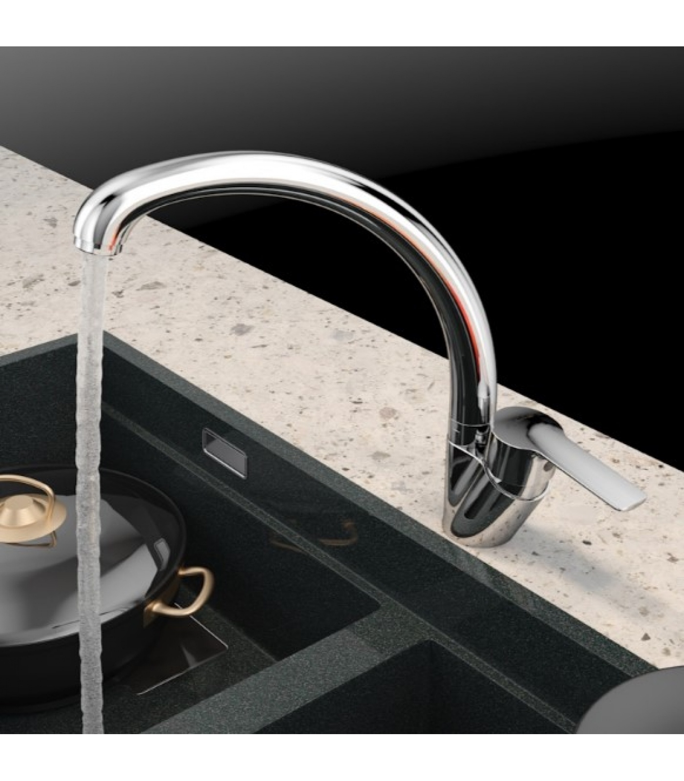 Однорычажный смеситель для кухни изготовленный из прочной и долговечной латуни, гарантирует надежную работу на протяжении многих лет. Его хромированное покрытие не только придаёт стильный вид, но и защищает от коррозии, что обеспечивает долгую эксплуатацию без потери качества.
