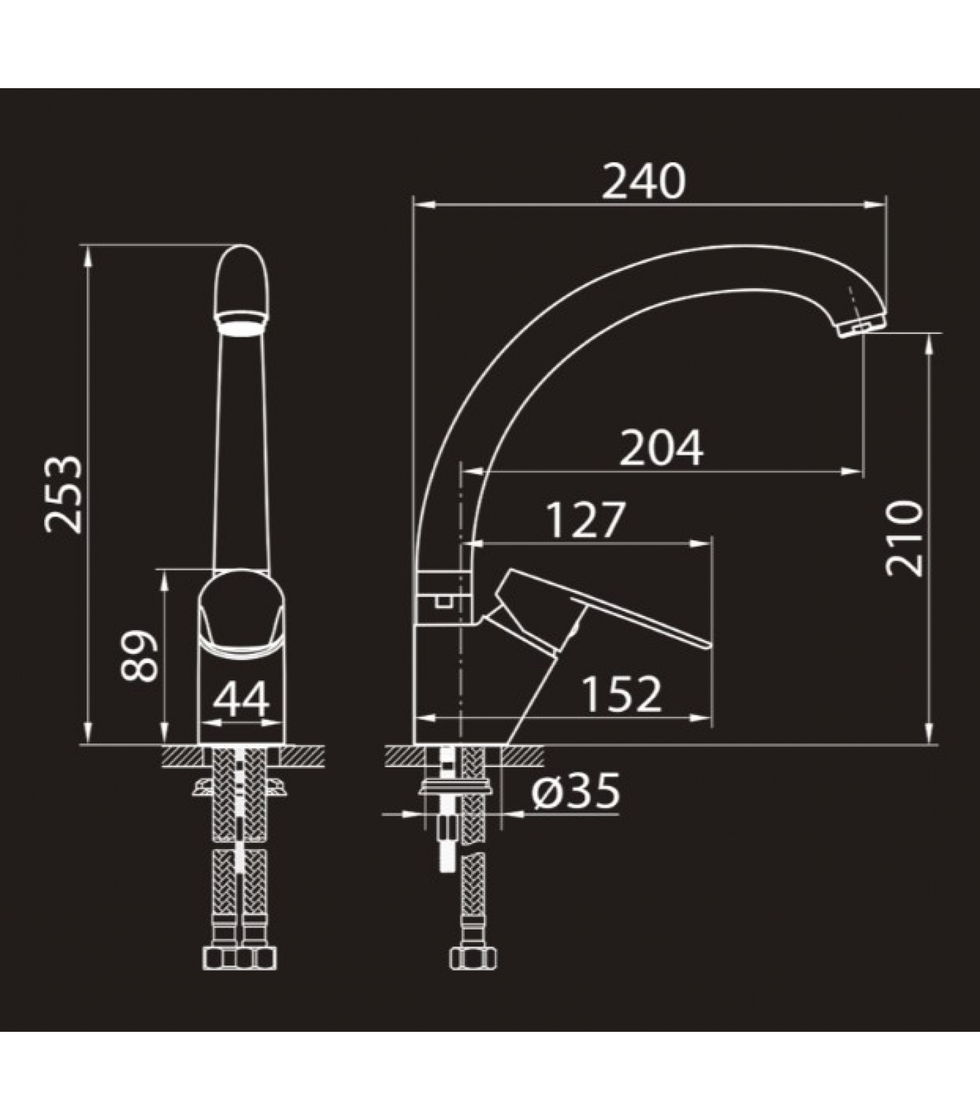 Установка смесителя на мойку не требует специальных инструментов, так как в комплект входят все необходимые крепления и гибкая подводка. Это позволяет легко и быстро подключить смеситель к системе водоснабжения. Эргономичный однорычажный механизм управления делает использование смесителя ещё более удобным и интуитивно понятным.