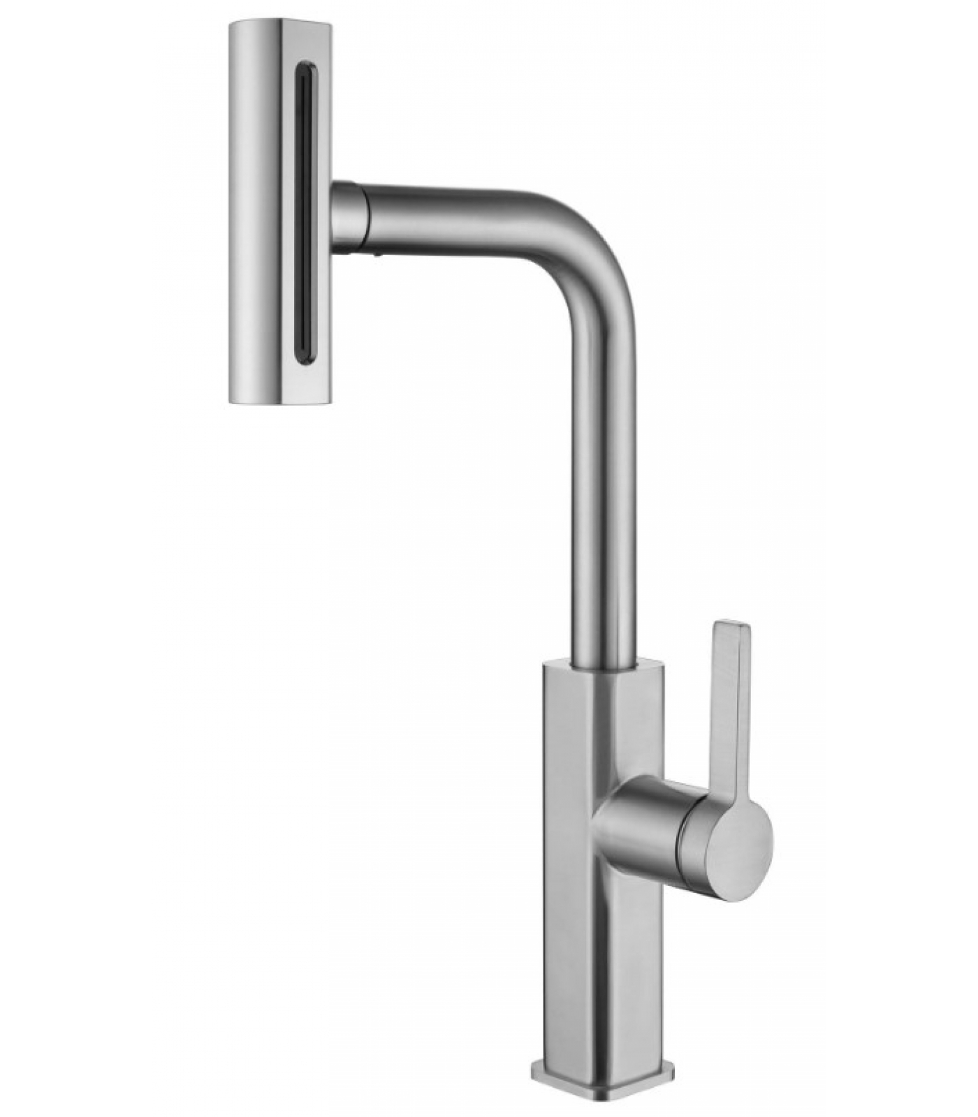 Смеситель для кухни Fmark FS8266L, высокий выдвижной излив, однорычажный, сатин