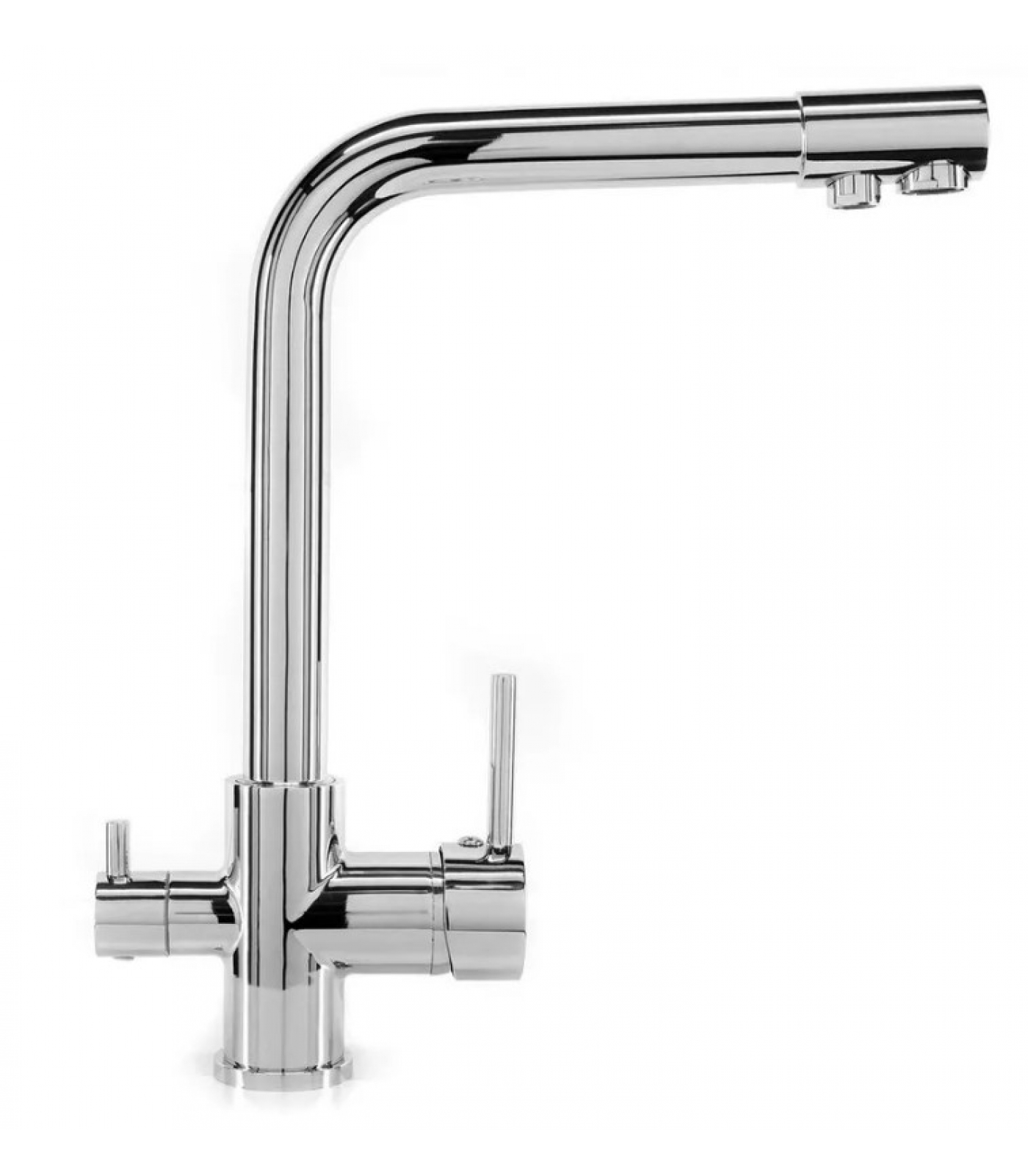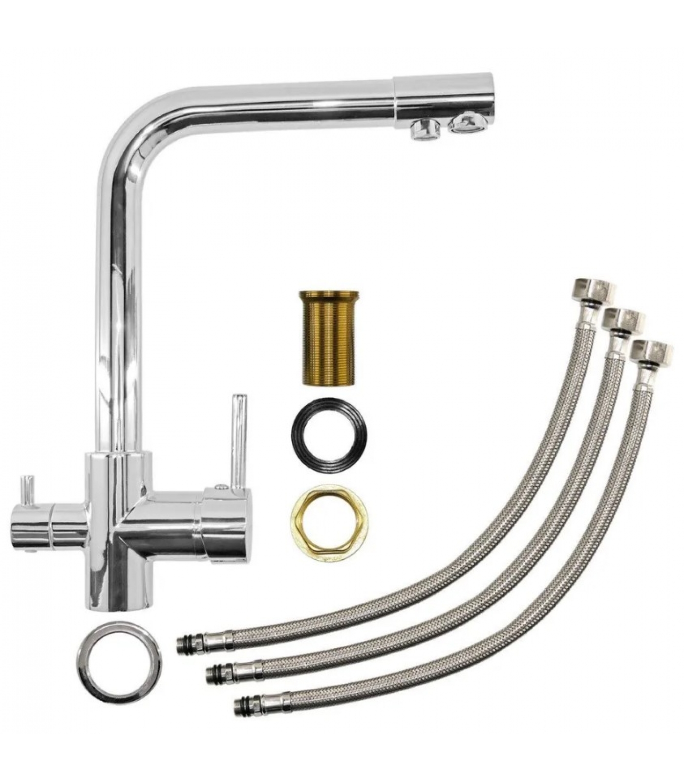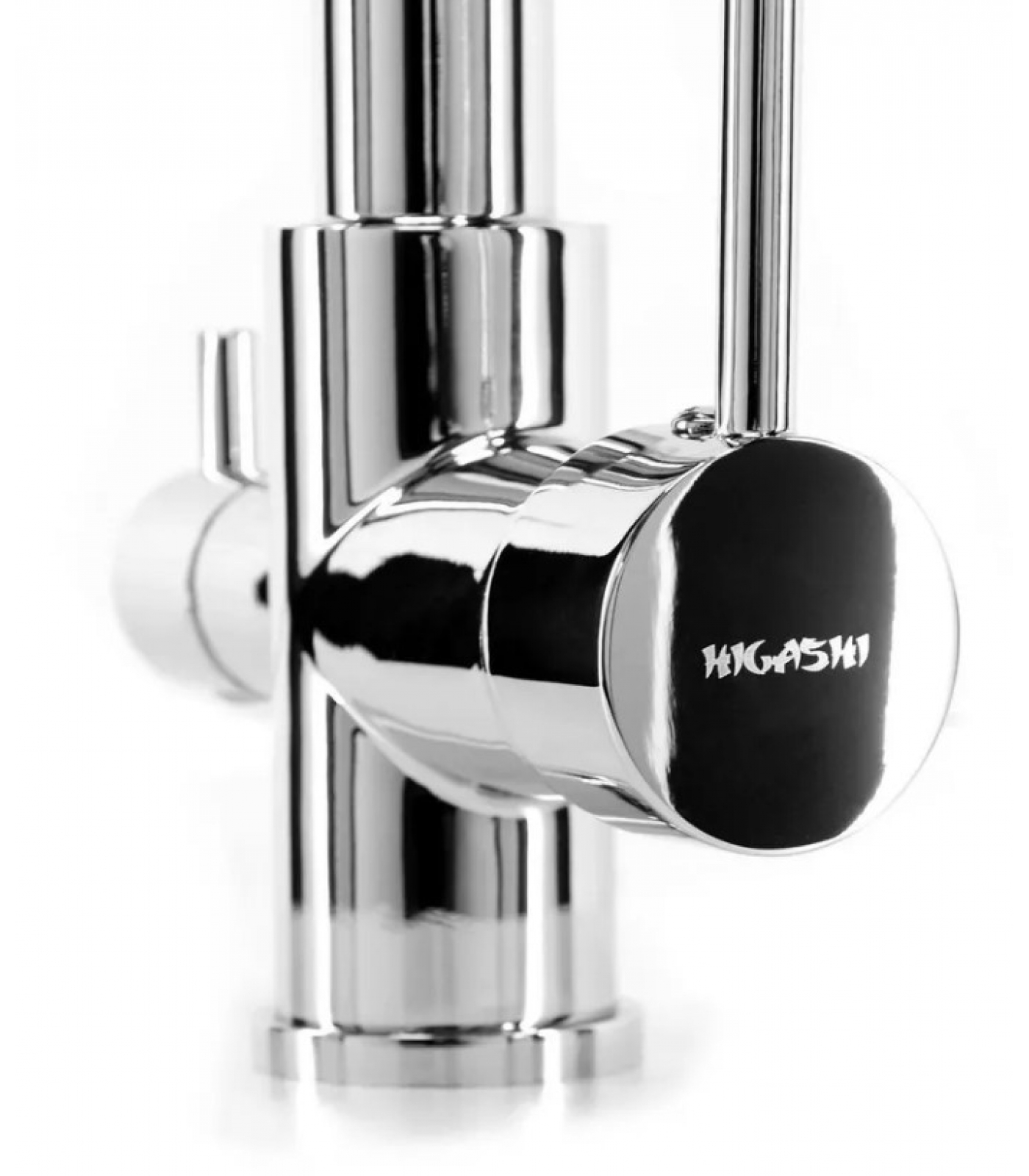 Смеситель для кухни с подключением к фильтру питьевой воды однорычажный с гибкой подводкой HIGASHI HG50-250, цвет хром