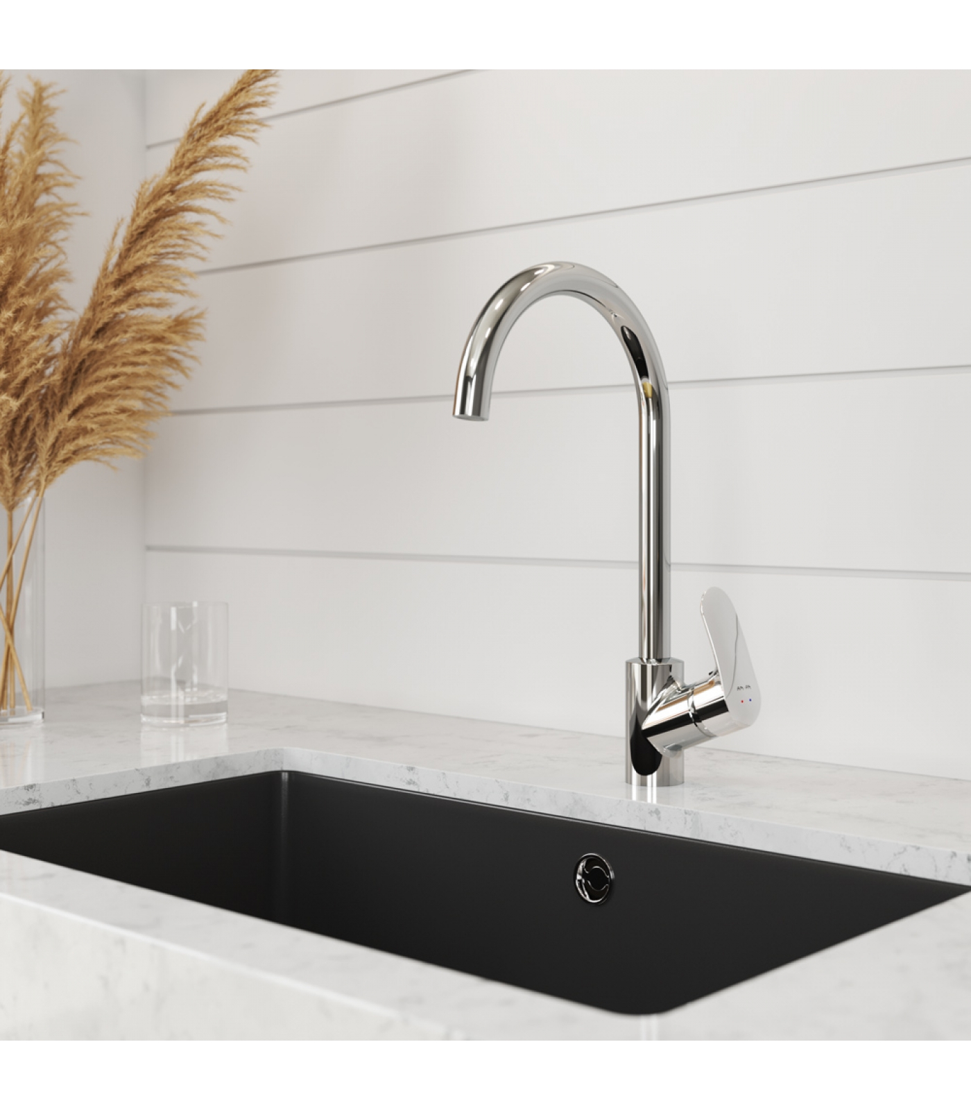 Максимальный комфорт: плавное вращение поворотного излива в любом направлении обеспечивает непревзойденное удовольствие от использования и удобство в работе на кухне.