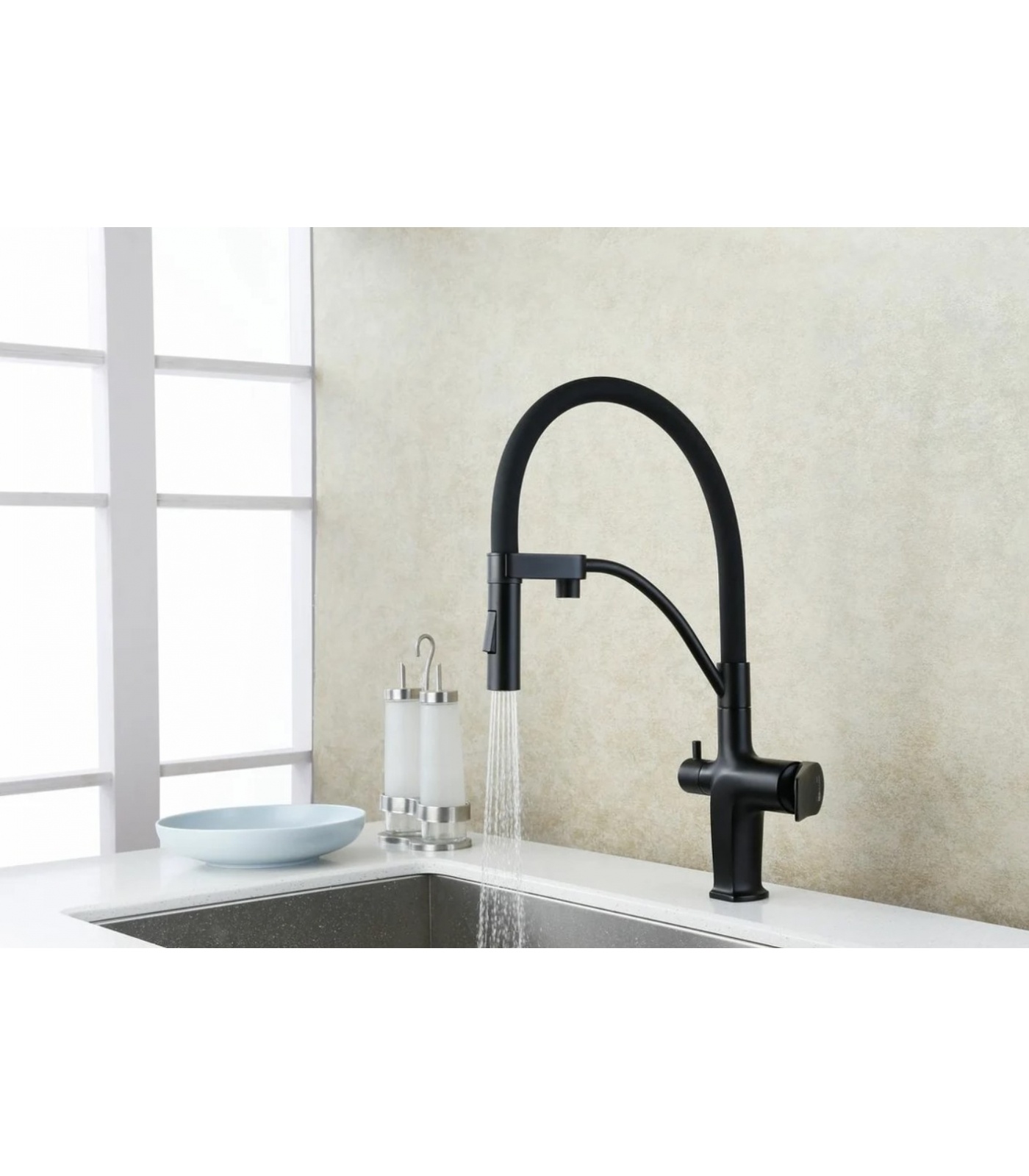 Смеситель для кухни Lemark Bronx LM3761BL, с выходом для фильтра, высокий гибкий излив, черный