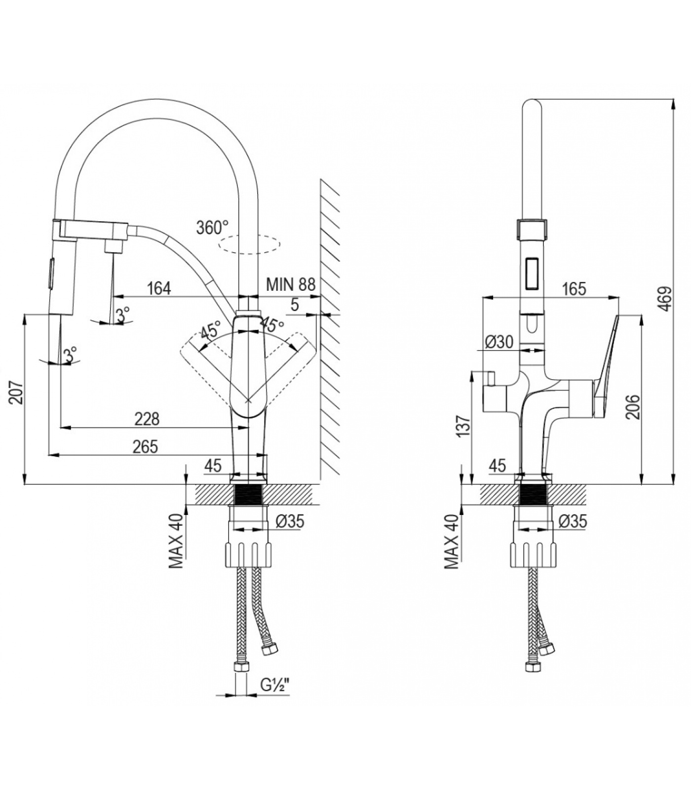 | Вращение излива | Поворотный |
