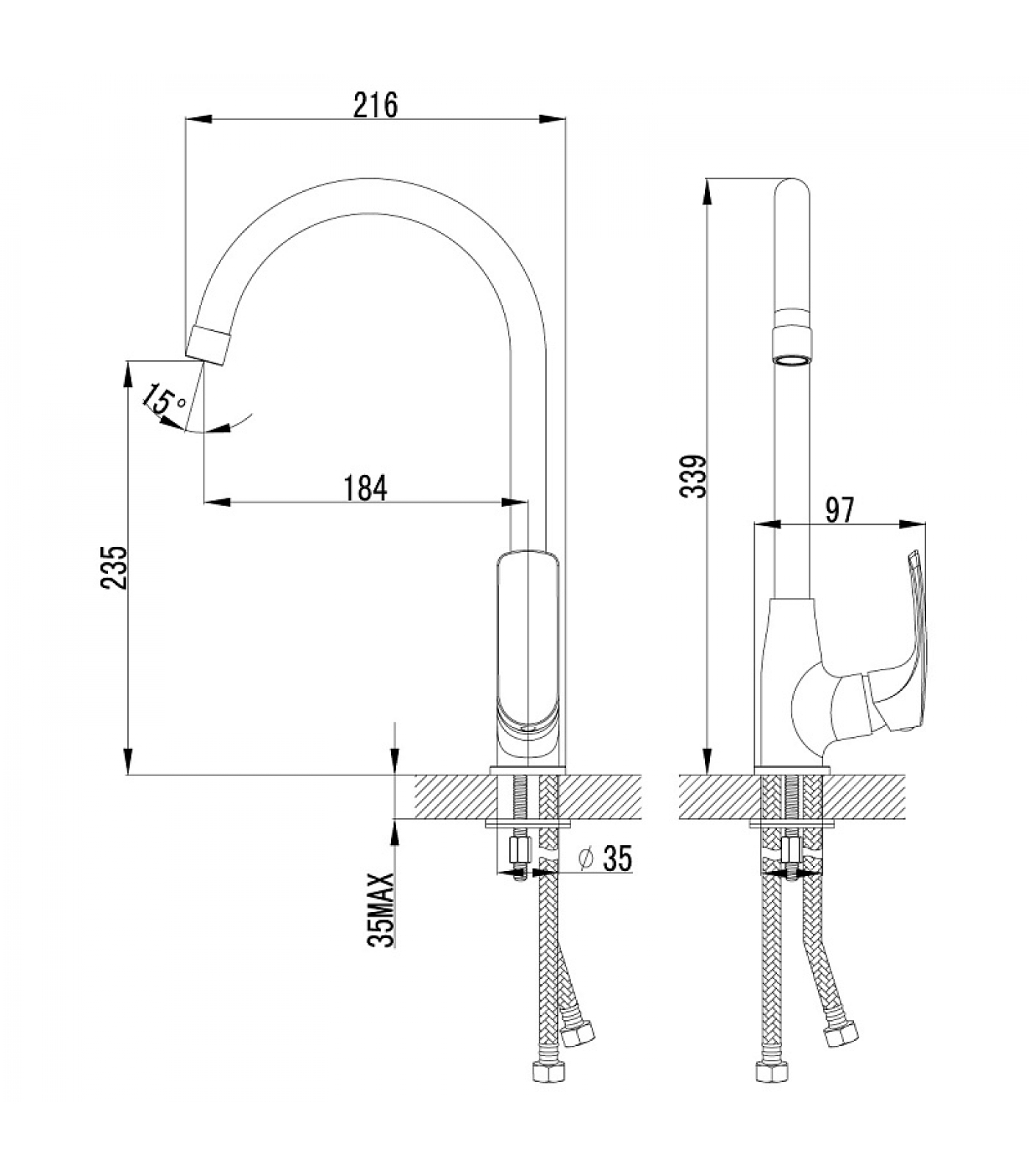 В комплект поставки входят крепления, аэратор и гибкая подводка.