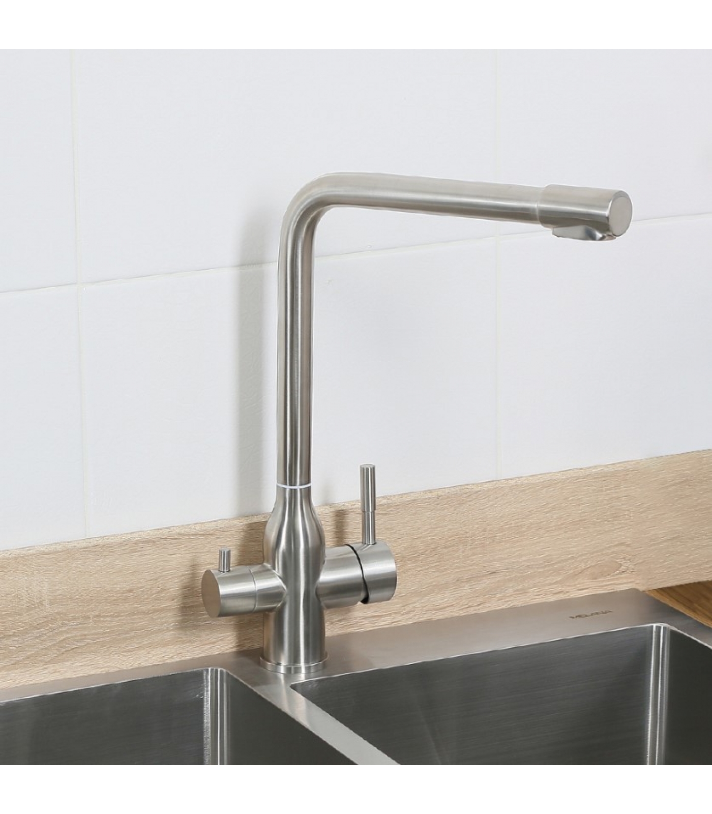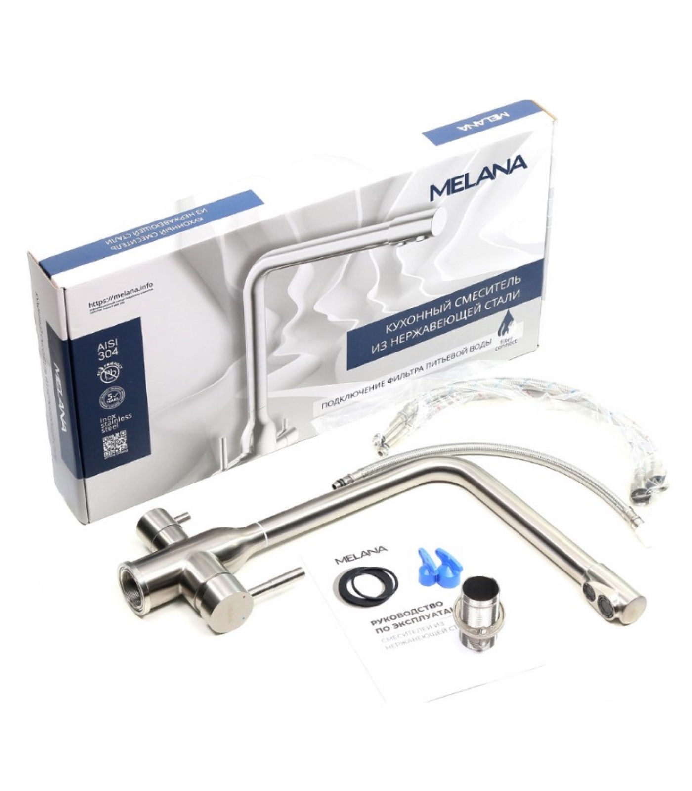 Смеситель для кухни Melana Stello с переключателем на фильтр, нержавеющая сталь, сатин