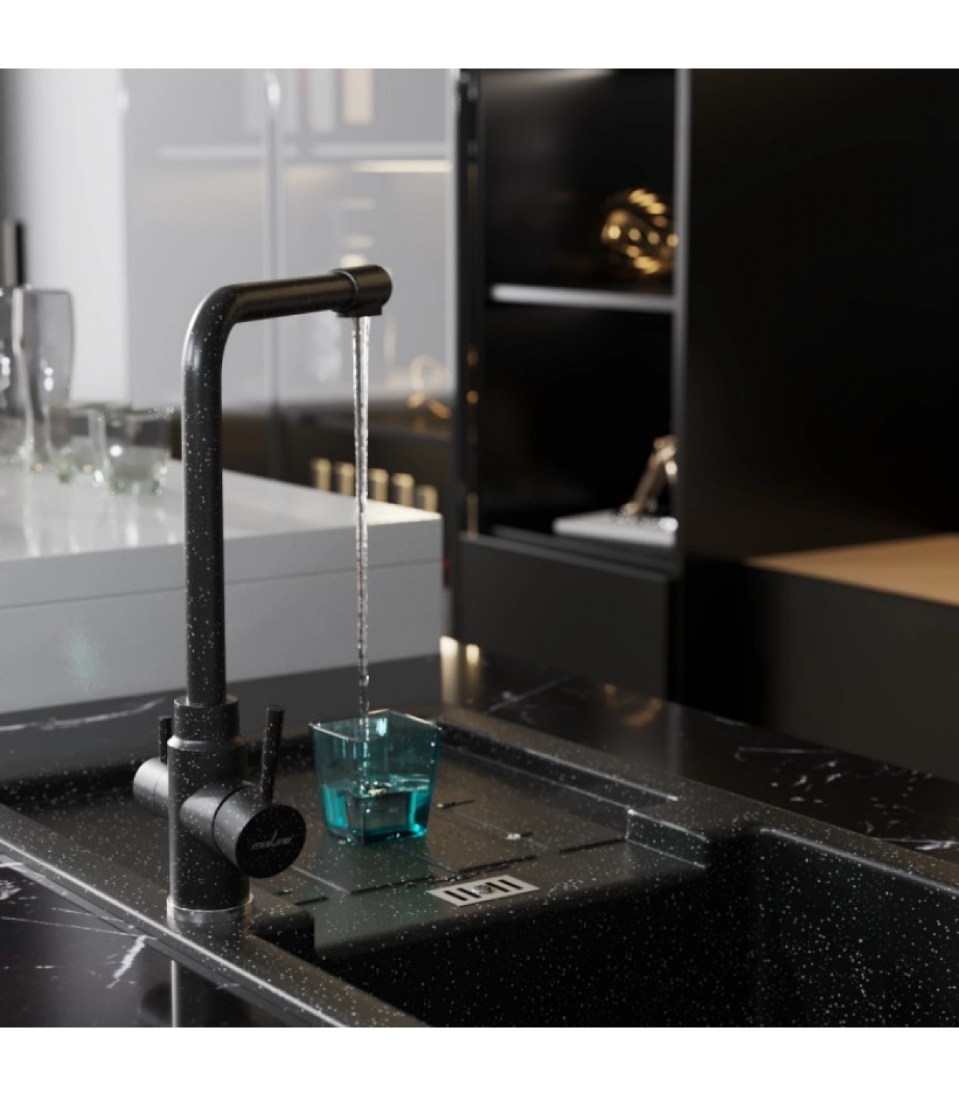 Смеситель для кухни Mixline ML-GS13 черный (308), с выходом для фильтра, высокий Г-излив