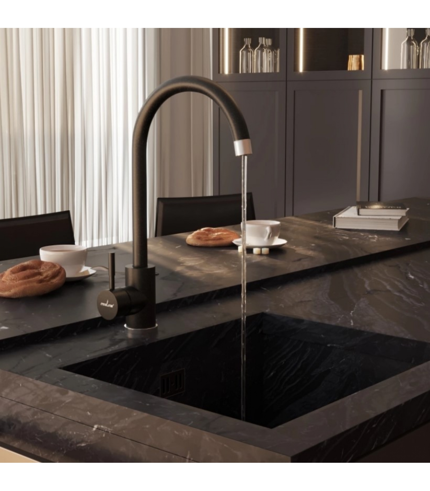 Смесители изготовлены из высококачественной нержавеющей стали марки SUS 304, что гарантирует их прочность, долговечность, устойчивость к перепадам температур. Покрытие, которое представляет собой порошковую окраску, обеспечивает защиту и безупречный внешний вид. Для удобства использования в конструкции изделия предусмотрен поворотный излив со встроенным аэратором. Высококачественный керамический картридж обеспечивает надежную работу смесителя и защищает его от протечек.
