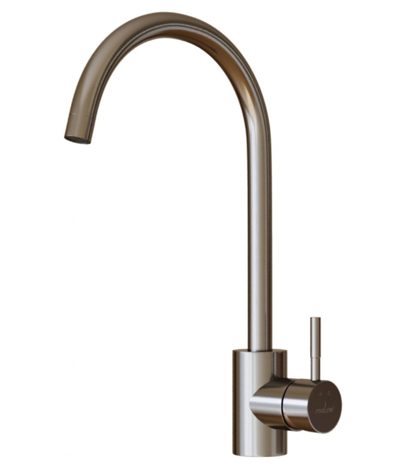 Смеситель для кухни Mixline MLSS-0303 высокий трубчатый излив, нержавеющая сталь, сатин
