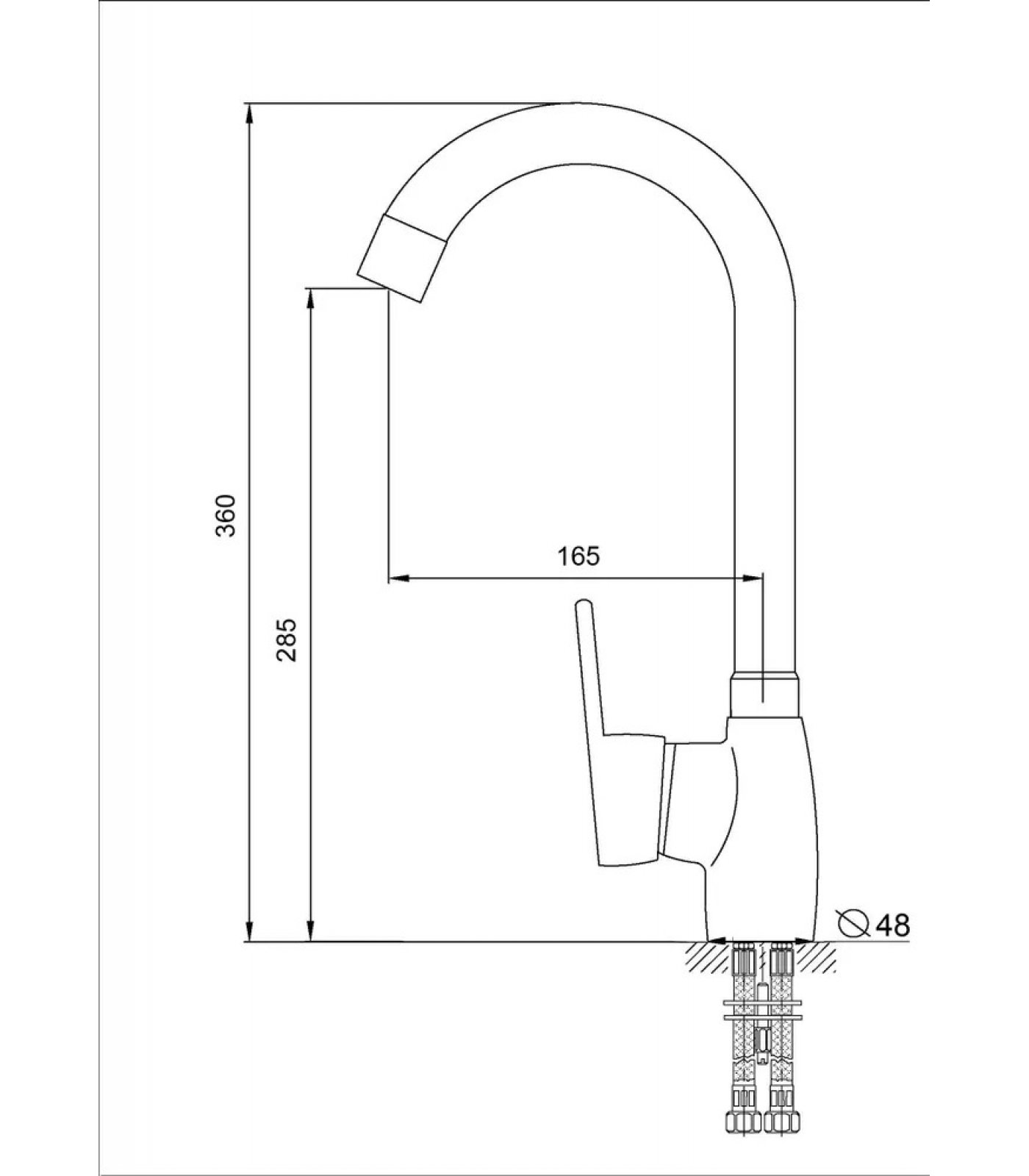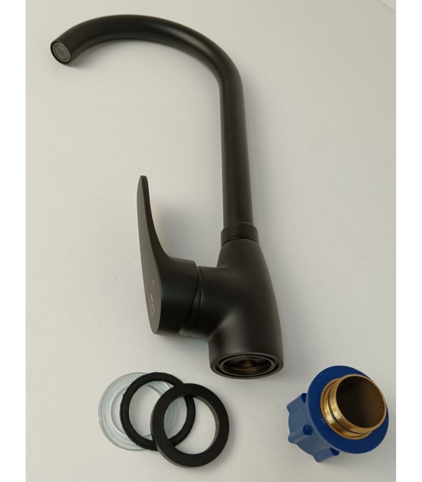 Смеситель для кухни Sanday SD38165-07, однорычажный, высокий излив, черный
