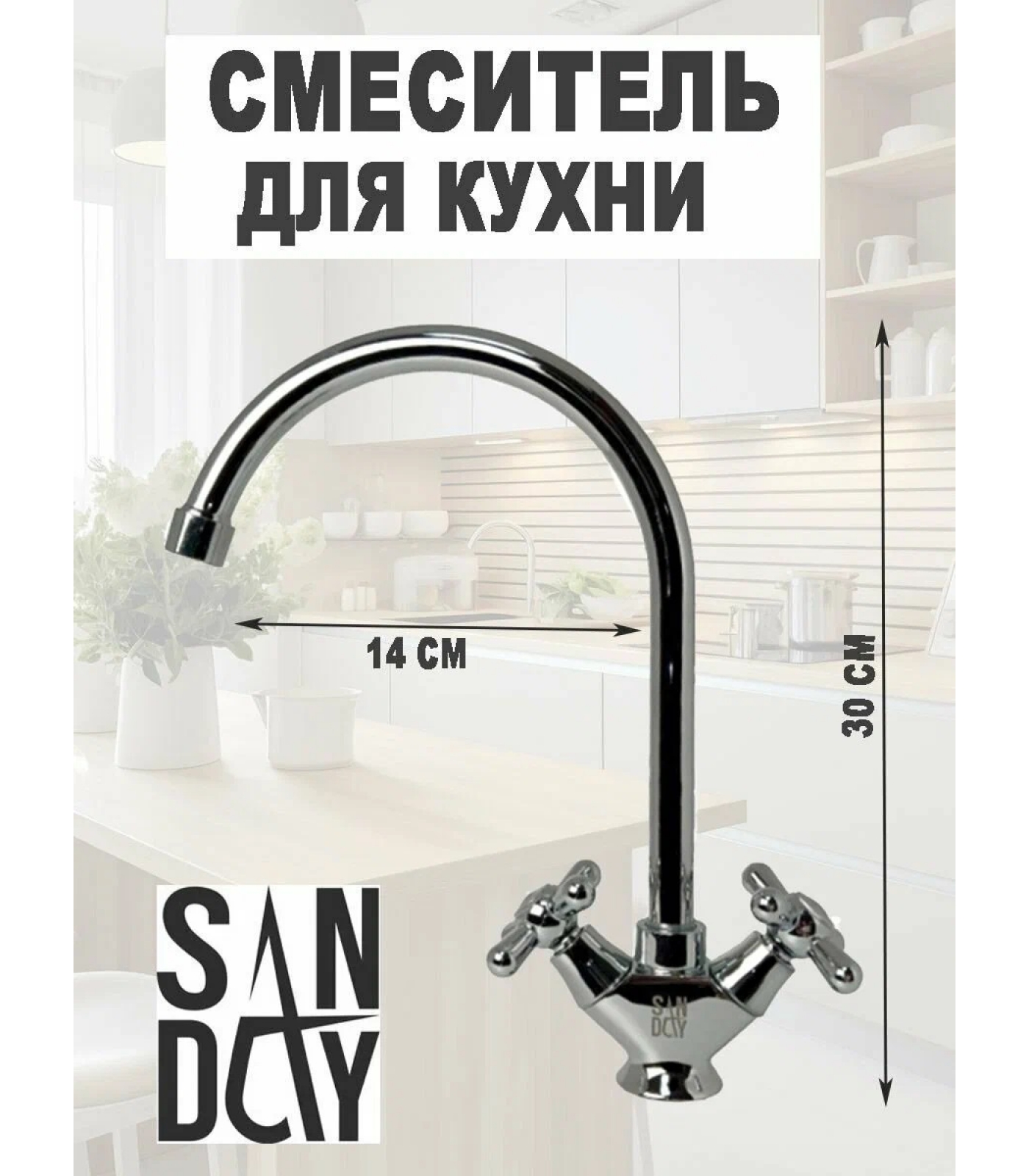Смеситель для кухни Sanday SD47986, двухвентильный, высокий излив