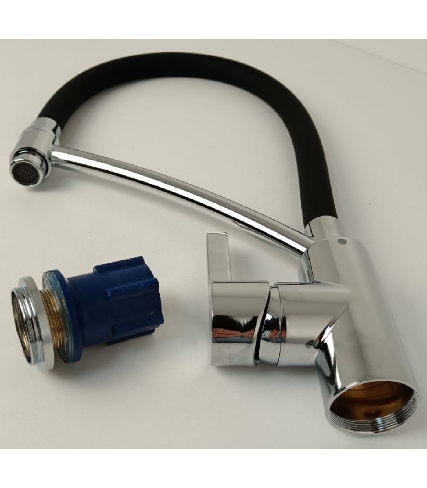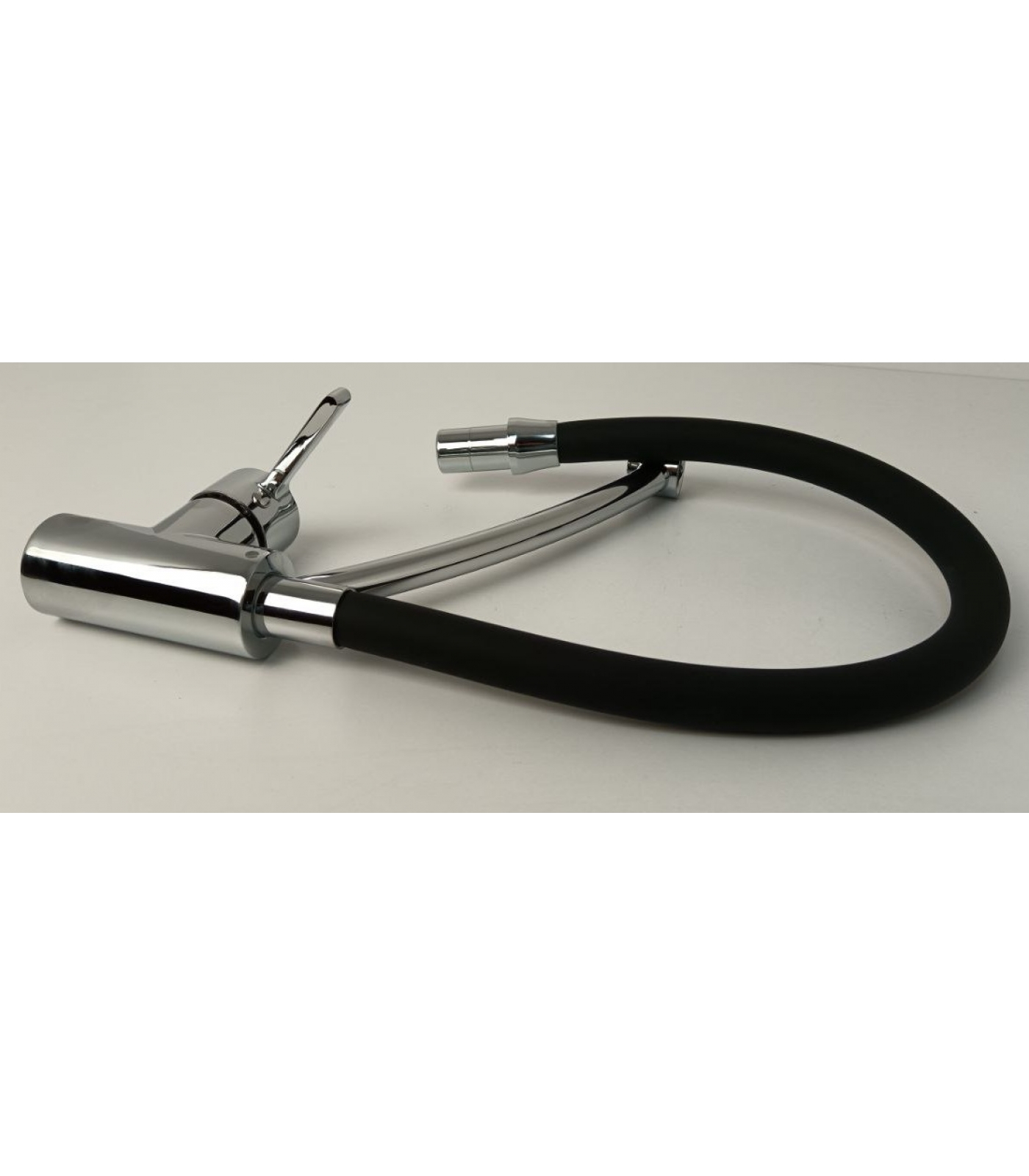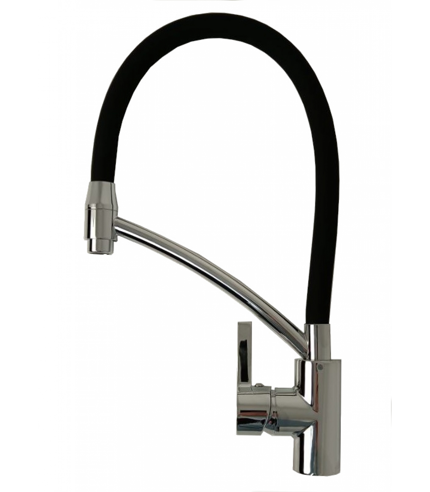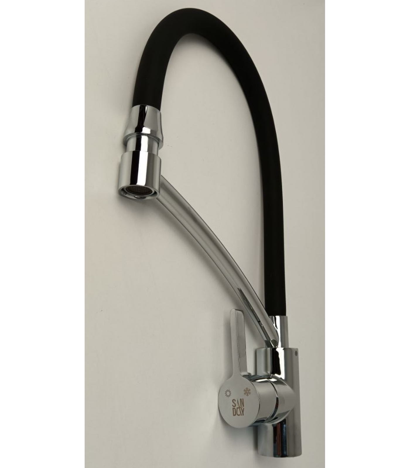 Смеситель для кухни Sanday SD567704-07, однорычажный, высокий гибкий излив, хром/черный