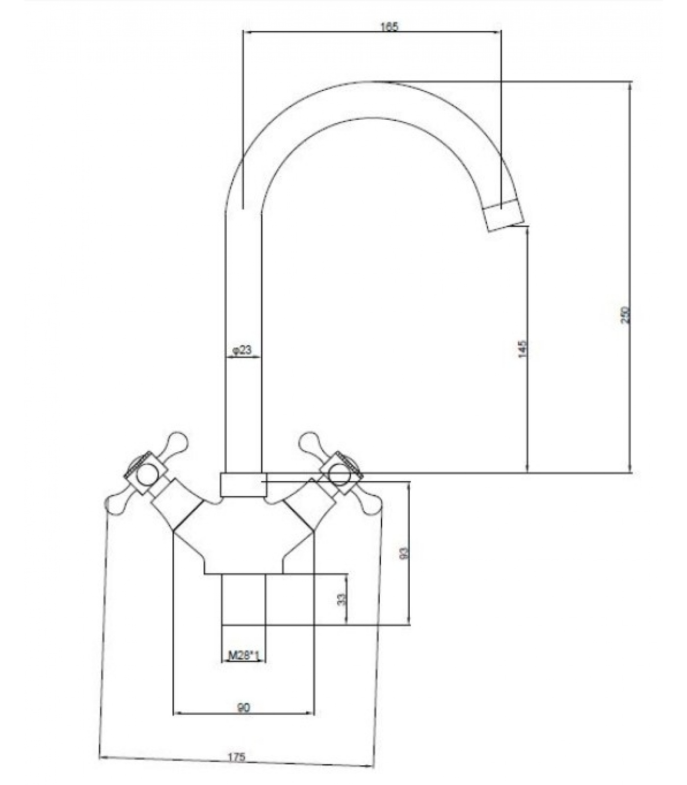 Смеситель для кухни Santrek Aqua 420 Classic Lux SL535, двухвентильный, поворотный излив, хром