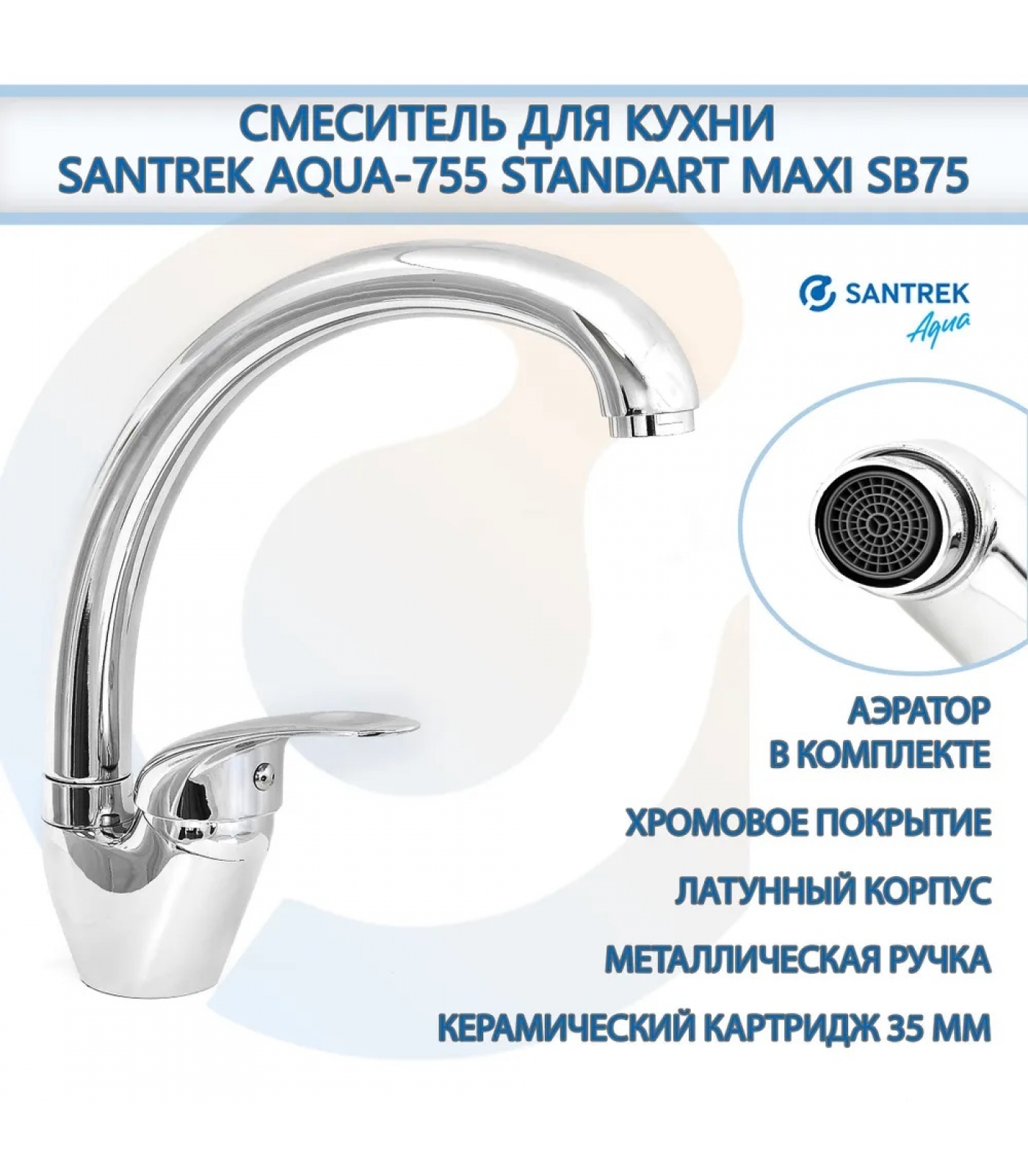 Смеситель Кухня SANTREK AQUA-755 "STANDART" MAXI шар. d-35 SB75