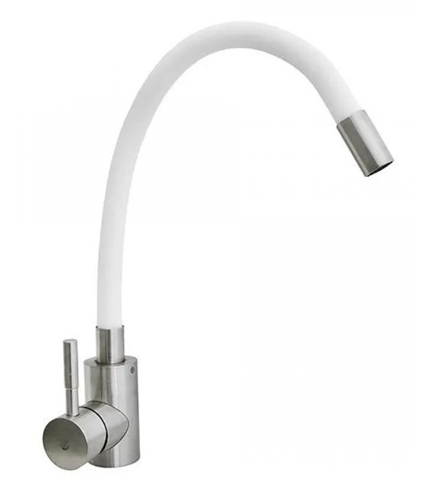 Смеситель для кухни Santrek Aqua 815 INOX нержавеющая сталь, гибкий белый излив