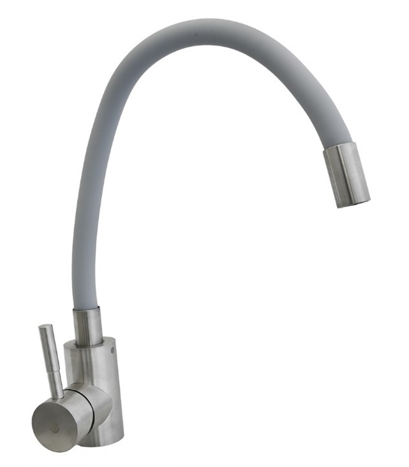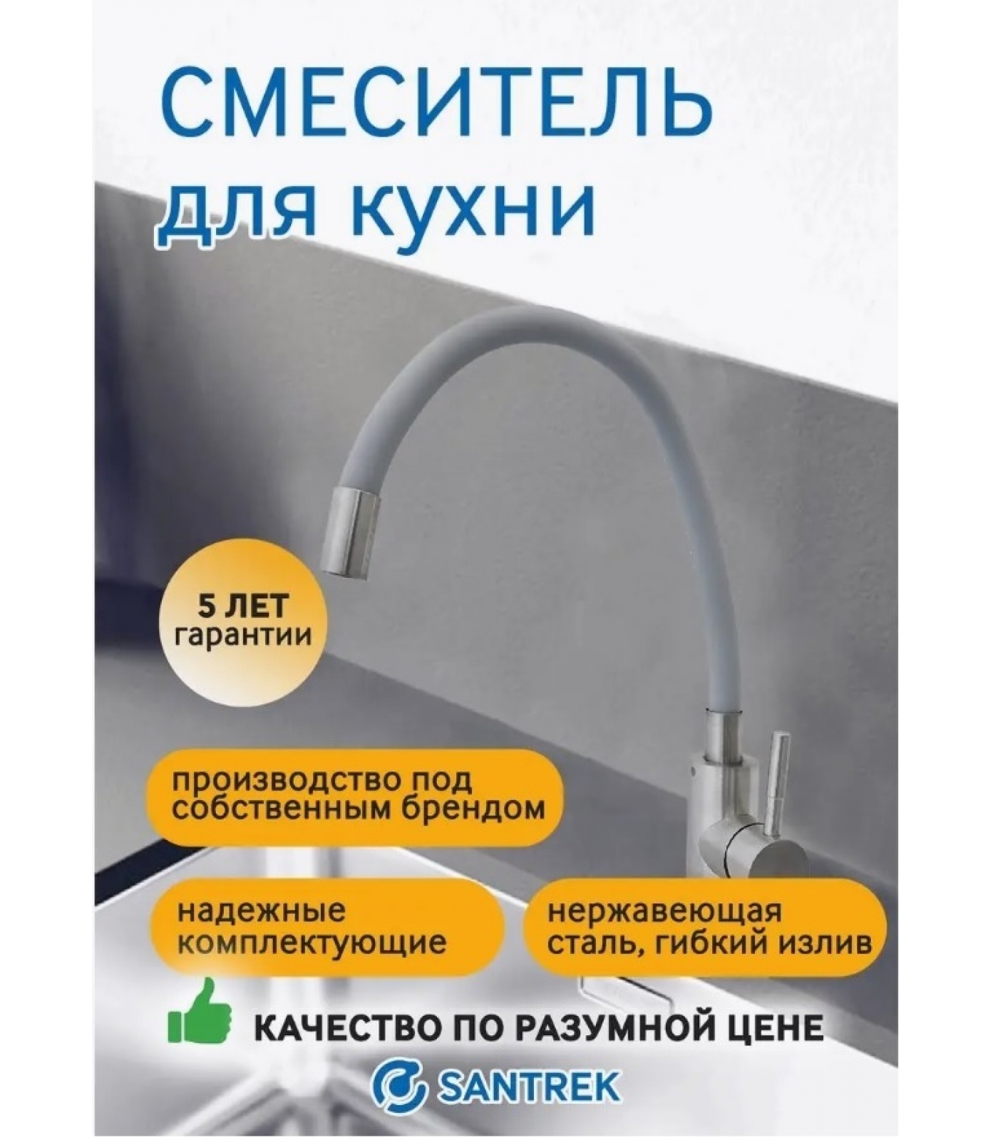 Стильный смеситель для кухни SANTREK AQUA серии INOX с гибким силиконовым изливом в сером цвете — это воплощение современного дизайна и функциональности в сантехнике.