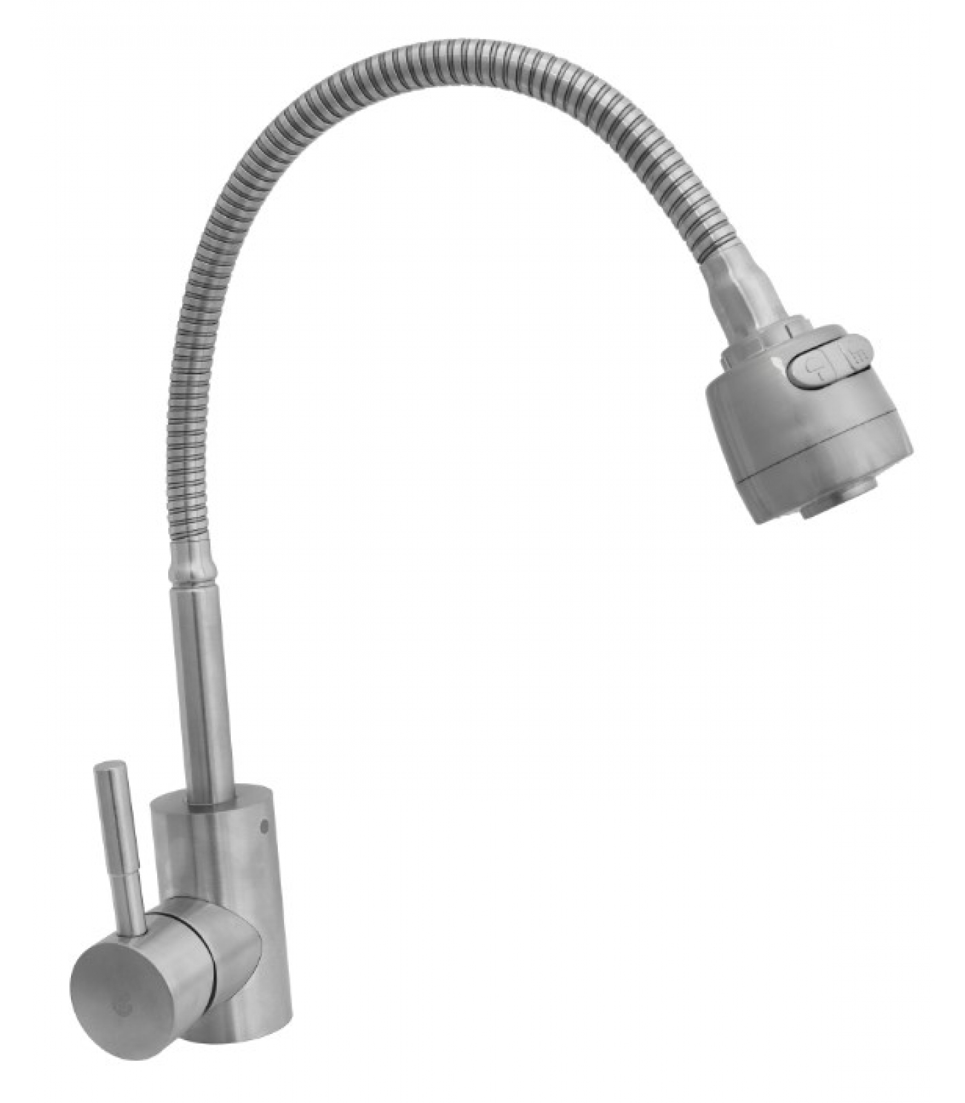 Смеситель для кухни Santrek Aqua 920 INOX нержавеющая сталь, гибкий излив, 2 режима