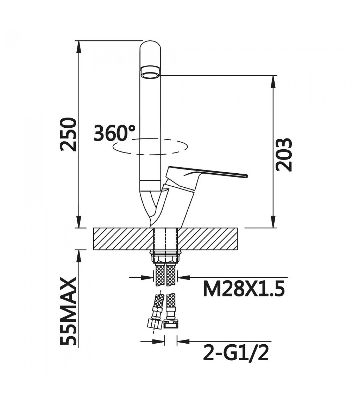 Смеситель для кухни VIEIR V013521, однорычажный, высокий С-излив