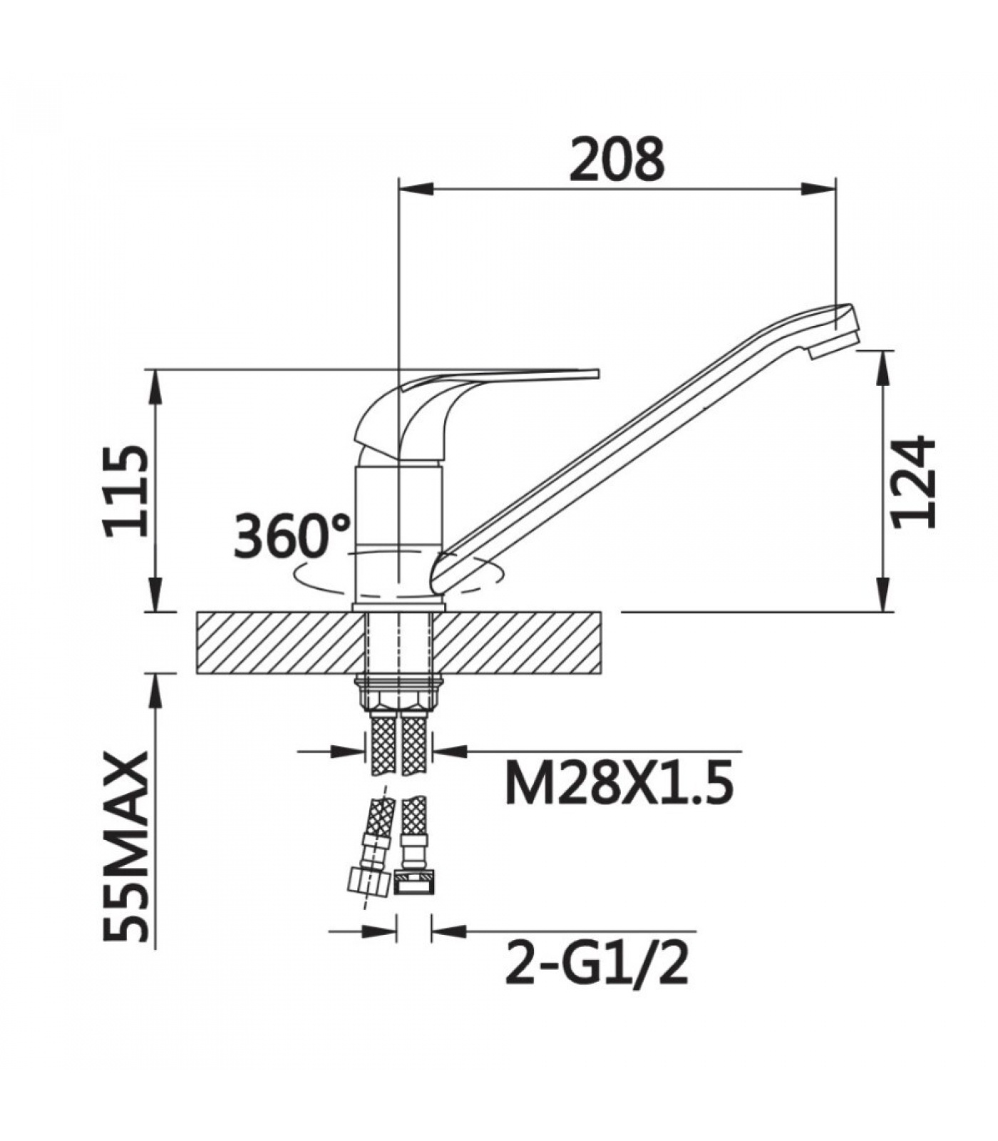 Смеситель для кухни VIEIR V033522, однорычажный, длинный излив
