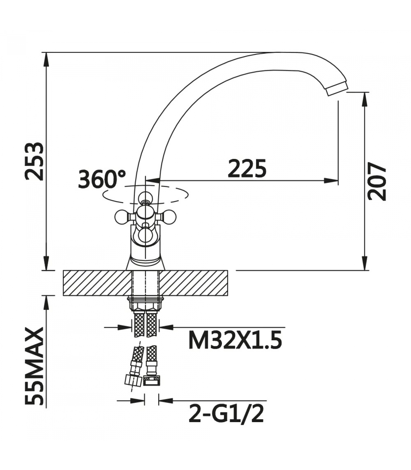 Смеситель для кухни VIEIR V140121, двухвентильный, высокий С-излив