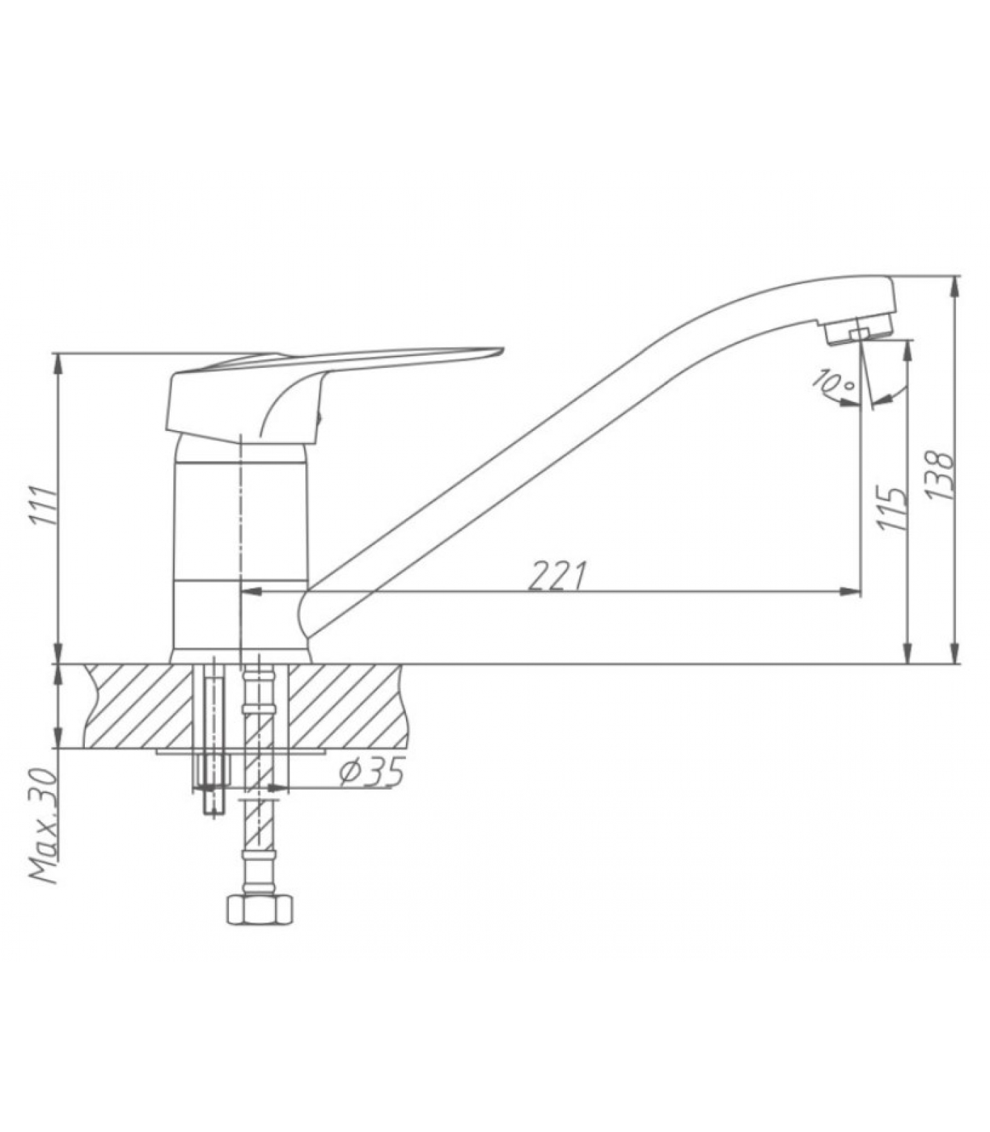 Смеситель для кухни бренда Valfex. Изготовлен из латуни. Картридж 40 мм. Укомплектован аэратором. Гибкая подводка 40 см. С поворотным изливом.