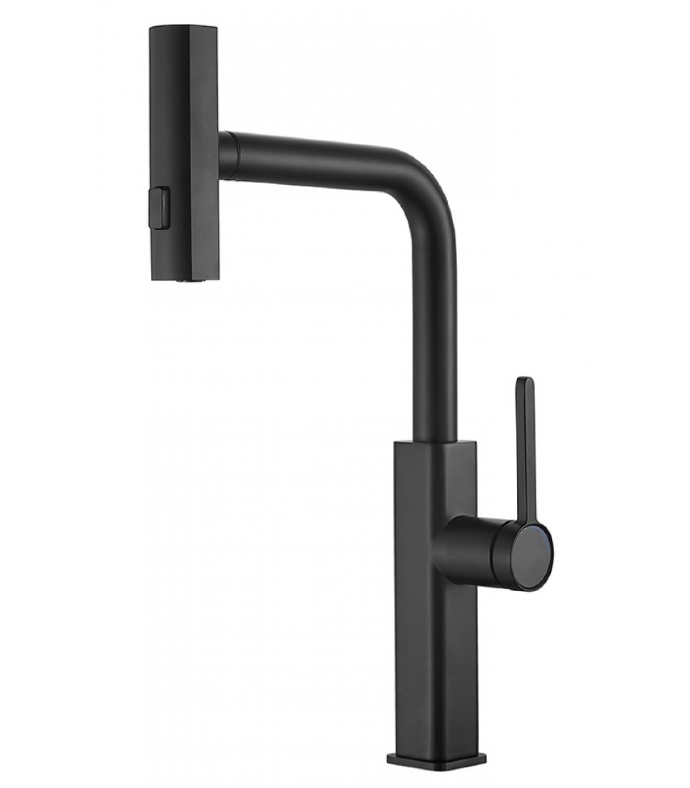 Смеситель для кухни Valfex Apollion Steel Black, однорычажный, высокий выдвижной излив, черный