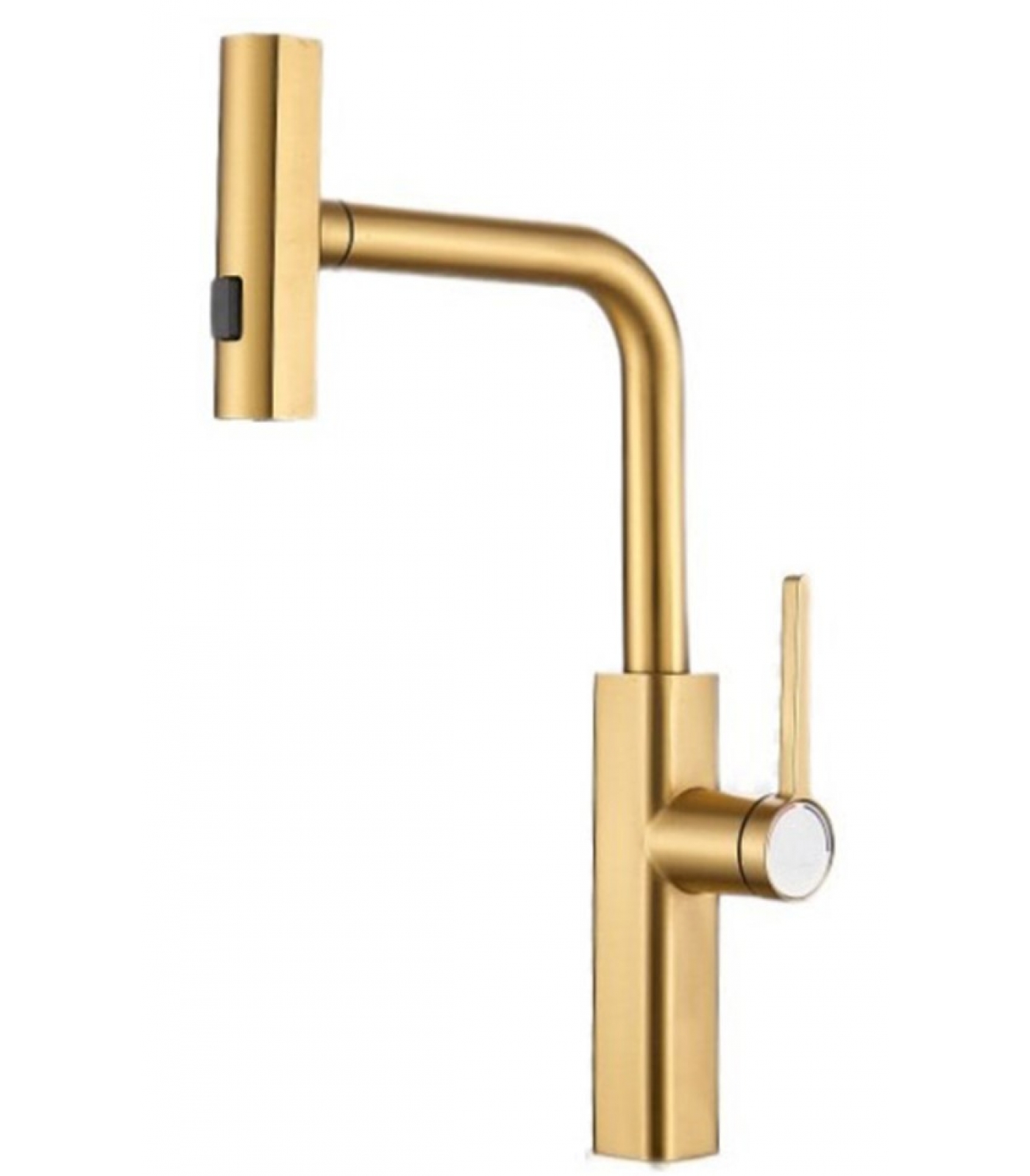 Смеситель для кухни Valfex Apollion Steel Golden, однорычажный, высокий выдвижной излив, золото