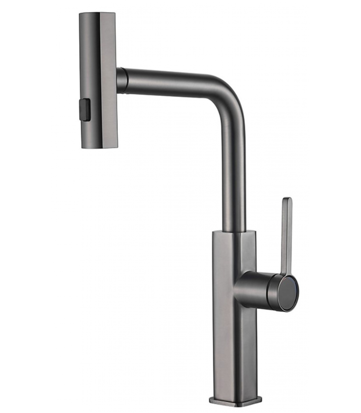Смеситель для кухни Valfex Apollion Steel Graphite, однорычажный, высокий выдвижной излив, графит