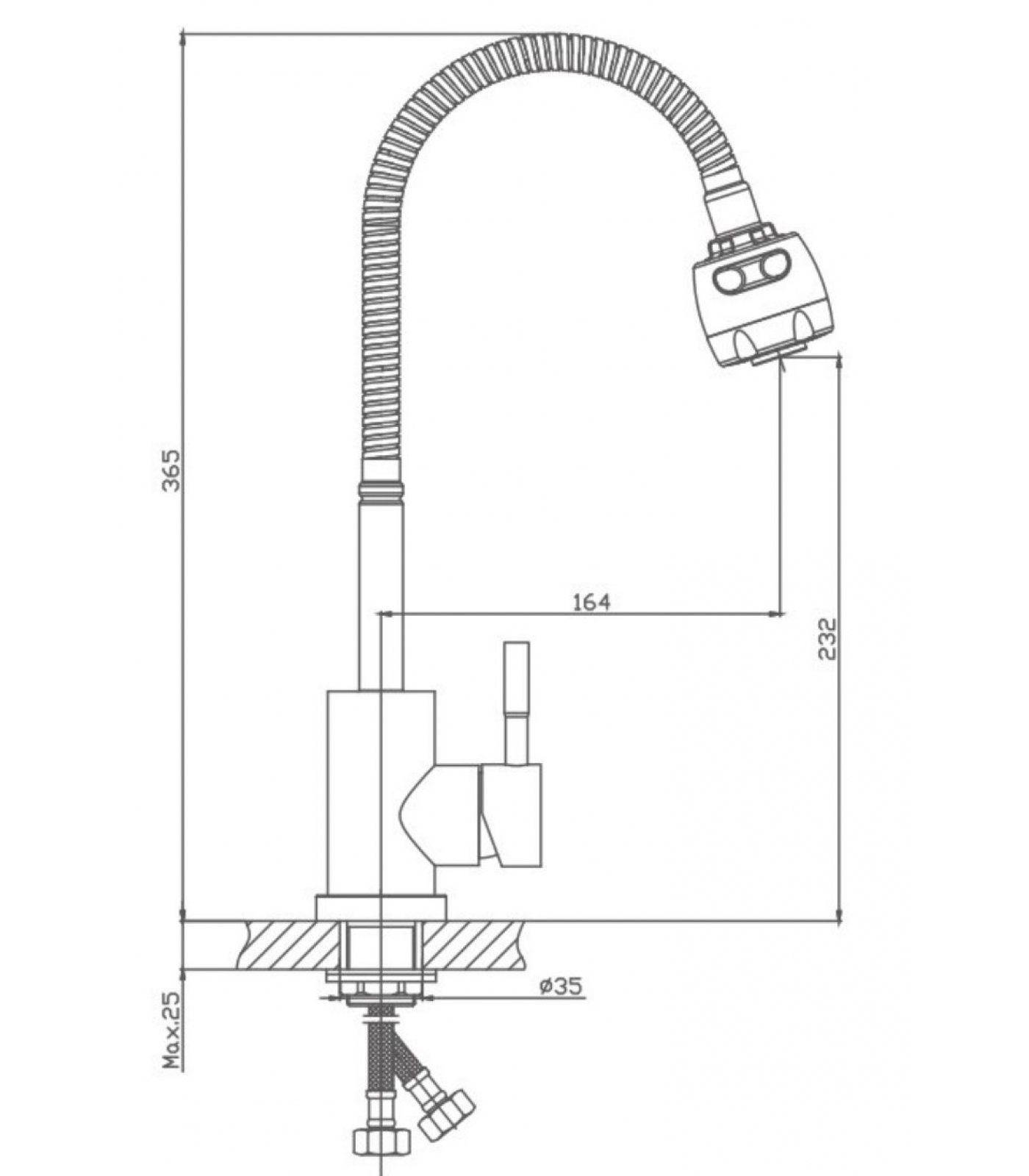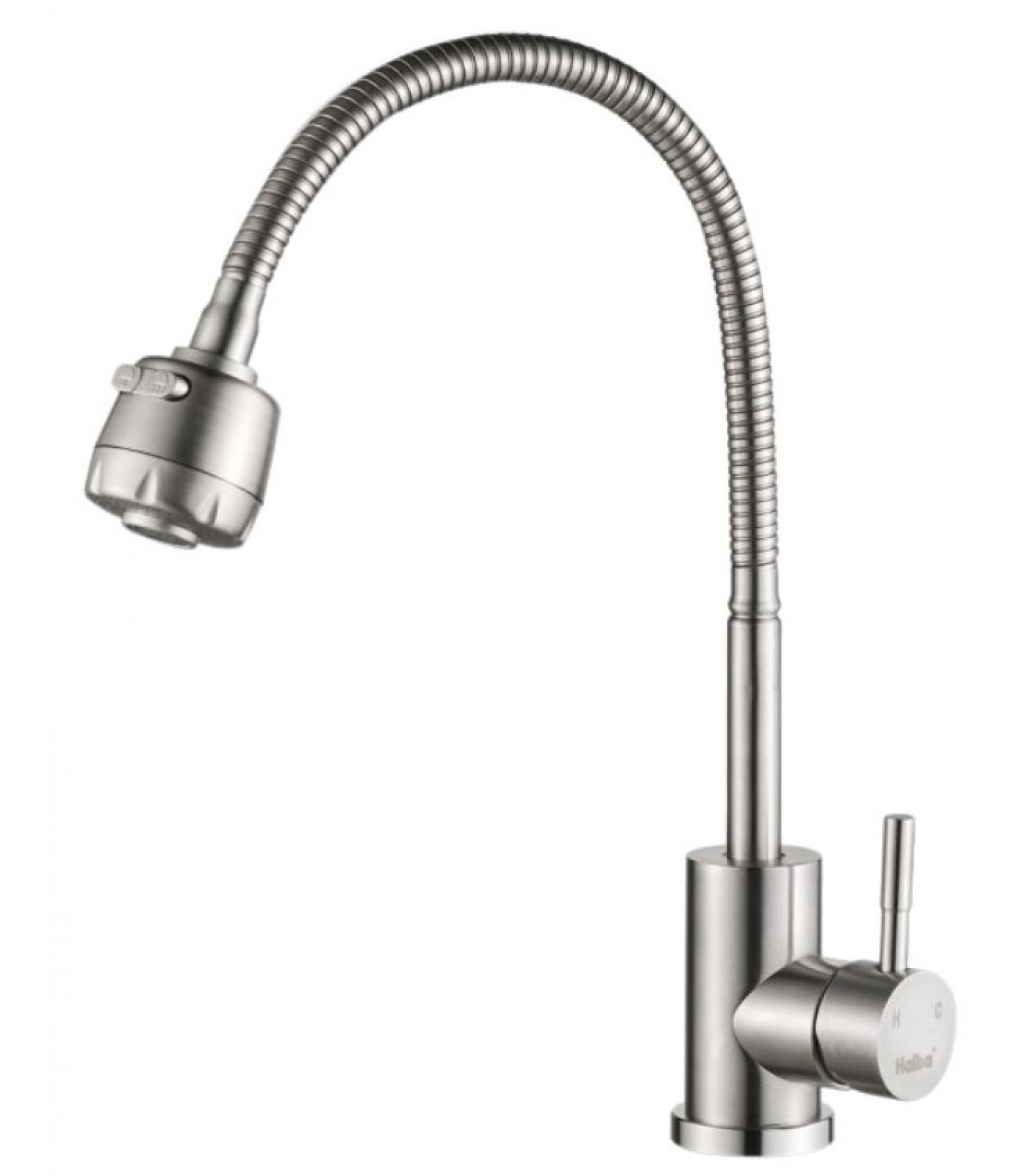 Смеситель для кухни бренда Valfex Atria Steel. Изготовлен из нержавеющей стали. Гибкий излив укомплектован аэратором.