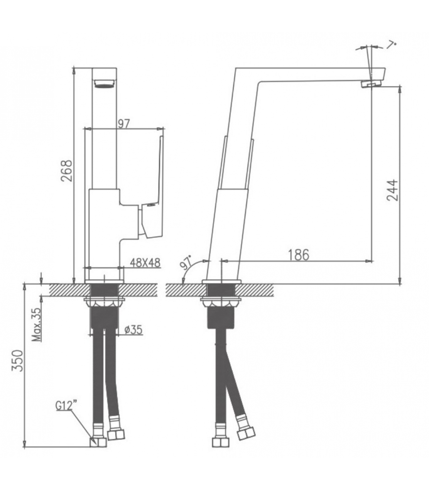 Смеситель для кухни бренда Valfex Kalliope Chrome. Изготовлен из латуни. Картридж 35 мм. Укомплектован аэратором. Гибкая подводка 40 см. С поворотным изливом.