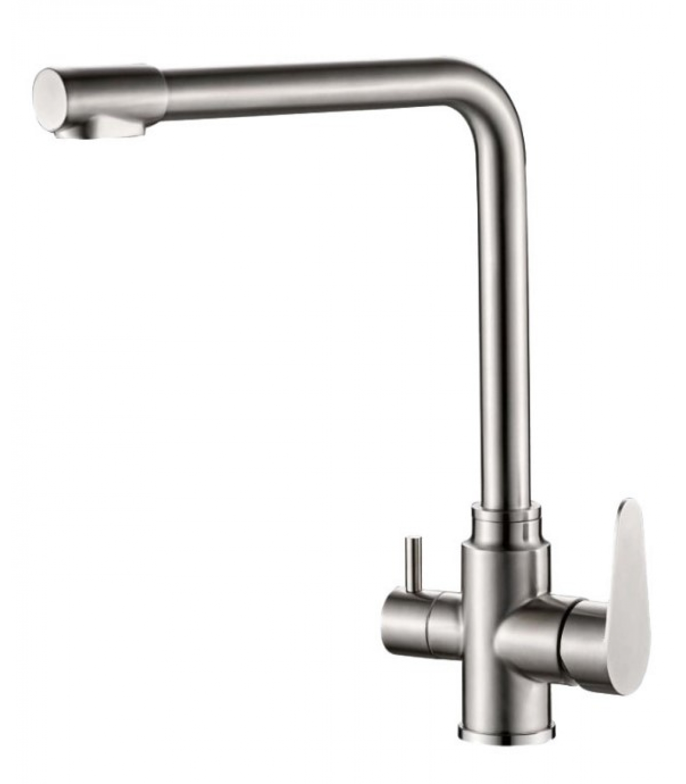 Смеситель для кухни Valfex Rigel Steel, с выходом для фильтра, высокий излив, сталь