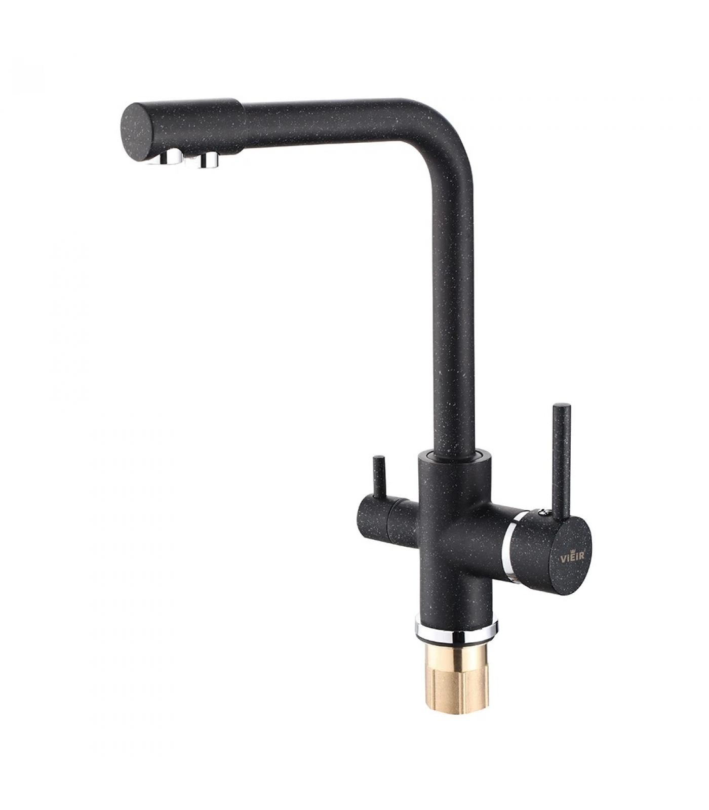 Смеситель для кухни VIEIR V15002C1, с выходом для фильтра, рычажный, высокий Г-излив, черный