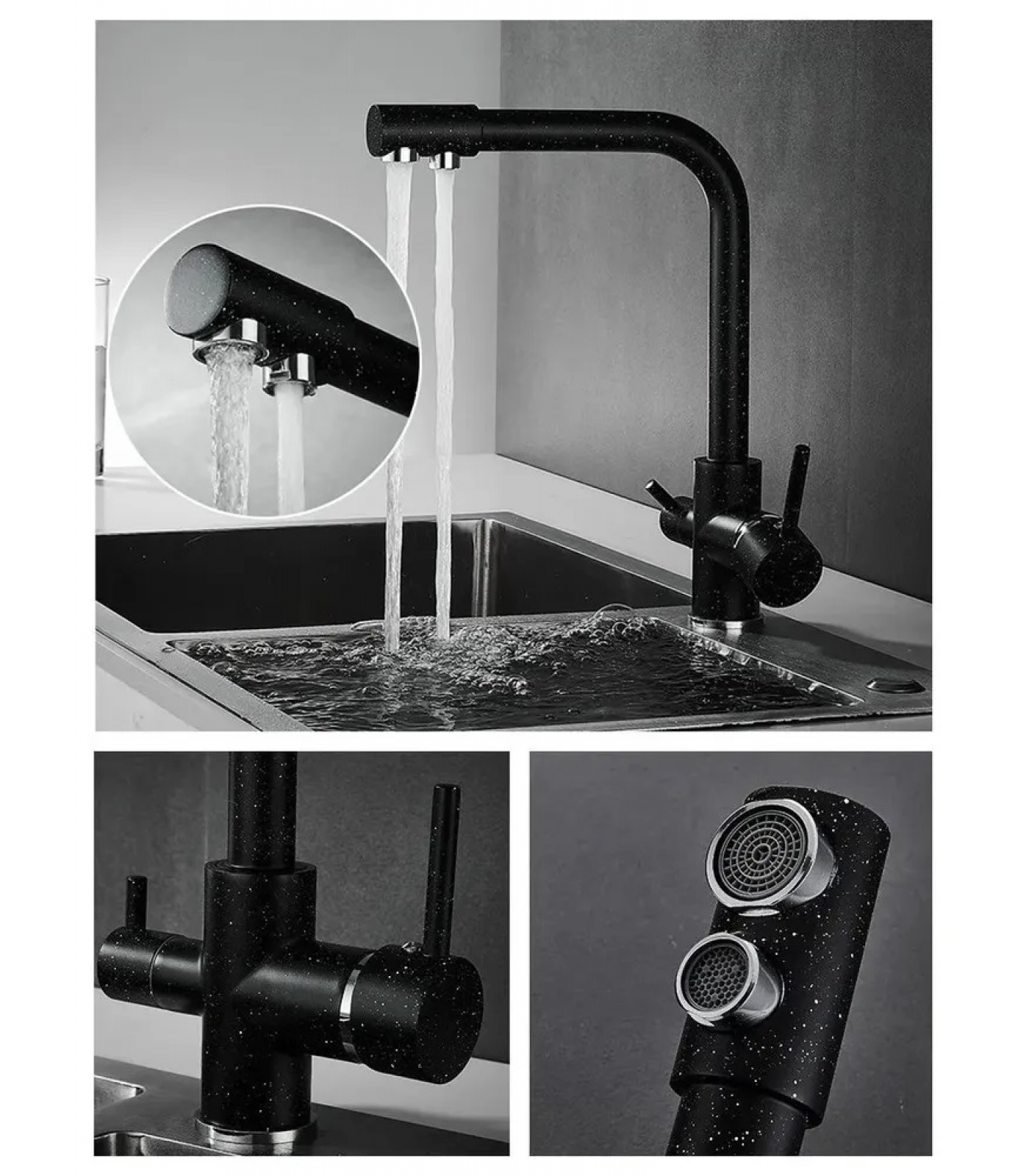 Описание: Смеситель для кухни 2-в-1 с подключением к фильтру, высокий поворотный биканальный излив
