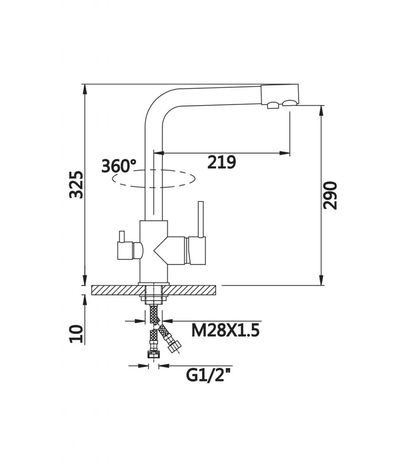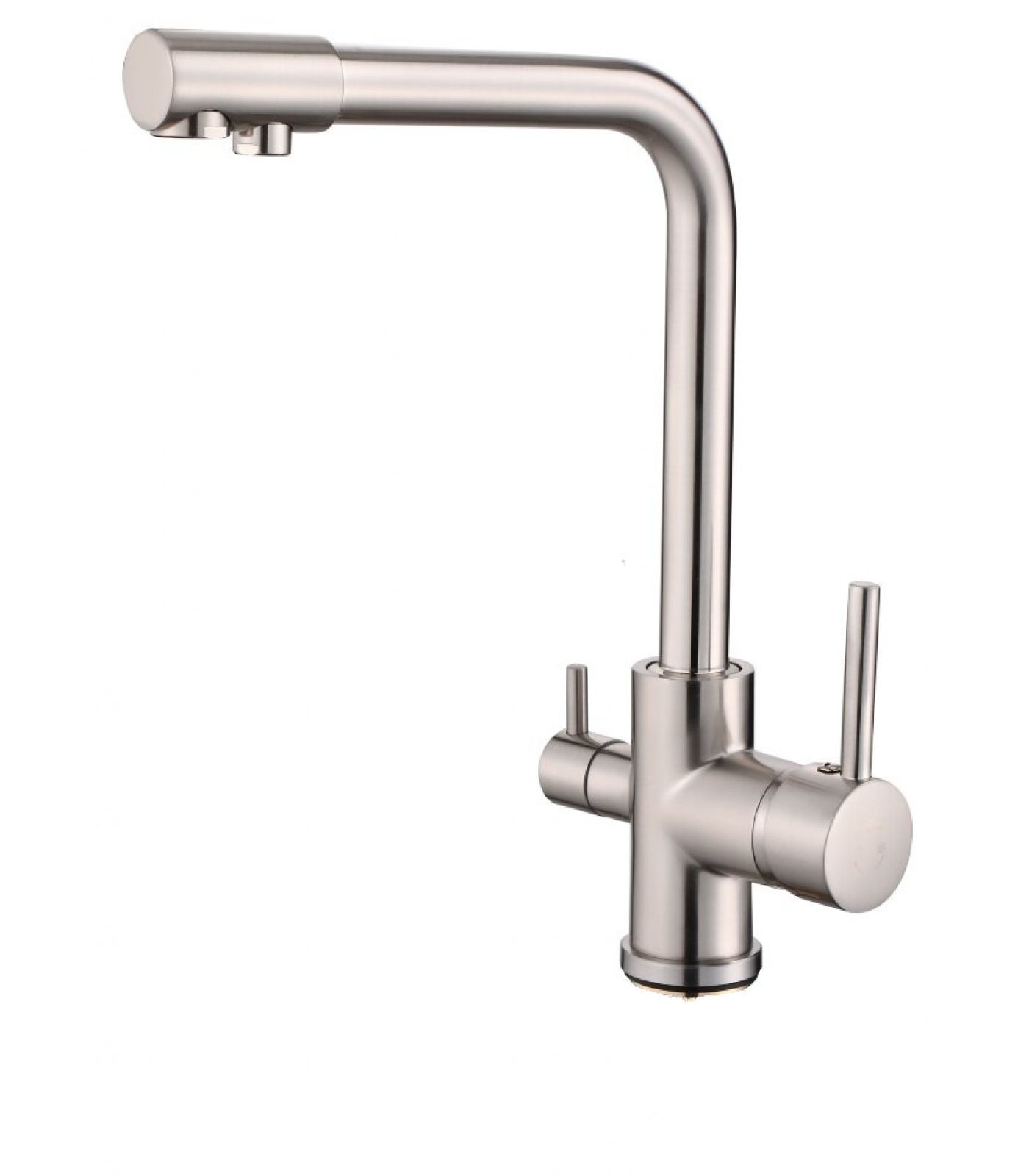 Смеситель для кухни VIEIR V15002G, с выходом для фильтра, рычажный, высокий Г-излив, сатин - выполнен современном и практичном стиле, в котором уже встроена возможность подключения фильтра для очистки питьевой воды. Смеситель данной коллекции подходит для разных интерьеров и типов моек. В изливе комбинированного смесителя находятся две трубки, которые предотвращают смешивание фильтрованной воды с водопроводной, преимущество данного смесителя в том, что Вам не надо будет сверлить дополнительное отверстие под кран питьевой воды, что обеспечит эстетику Вашей кухни.