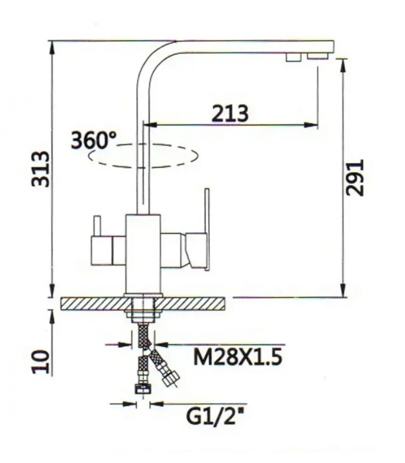 Смеситель для кухни VIEIR V15004, с выходом для фильтра, рычажный, высокий Г-излив,