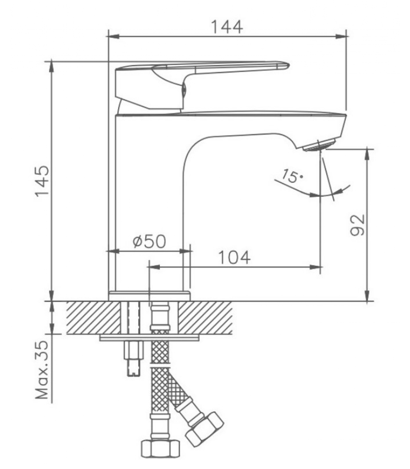 Смеситель для раковины Valfex. Керамический картридж 35 мм. Изготовлен из латуни. Максимальная глубина монтажа 35 мм. Диаметр монтажного отверстия 35 мм.