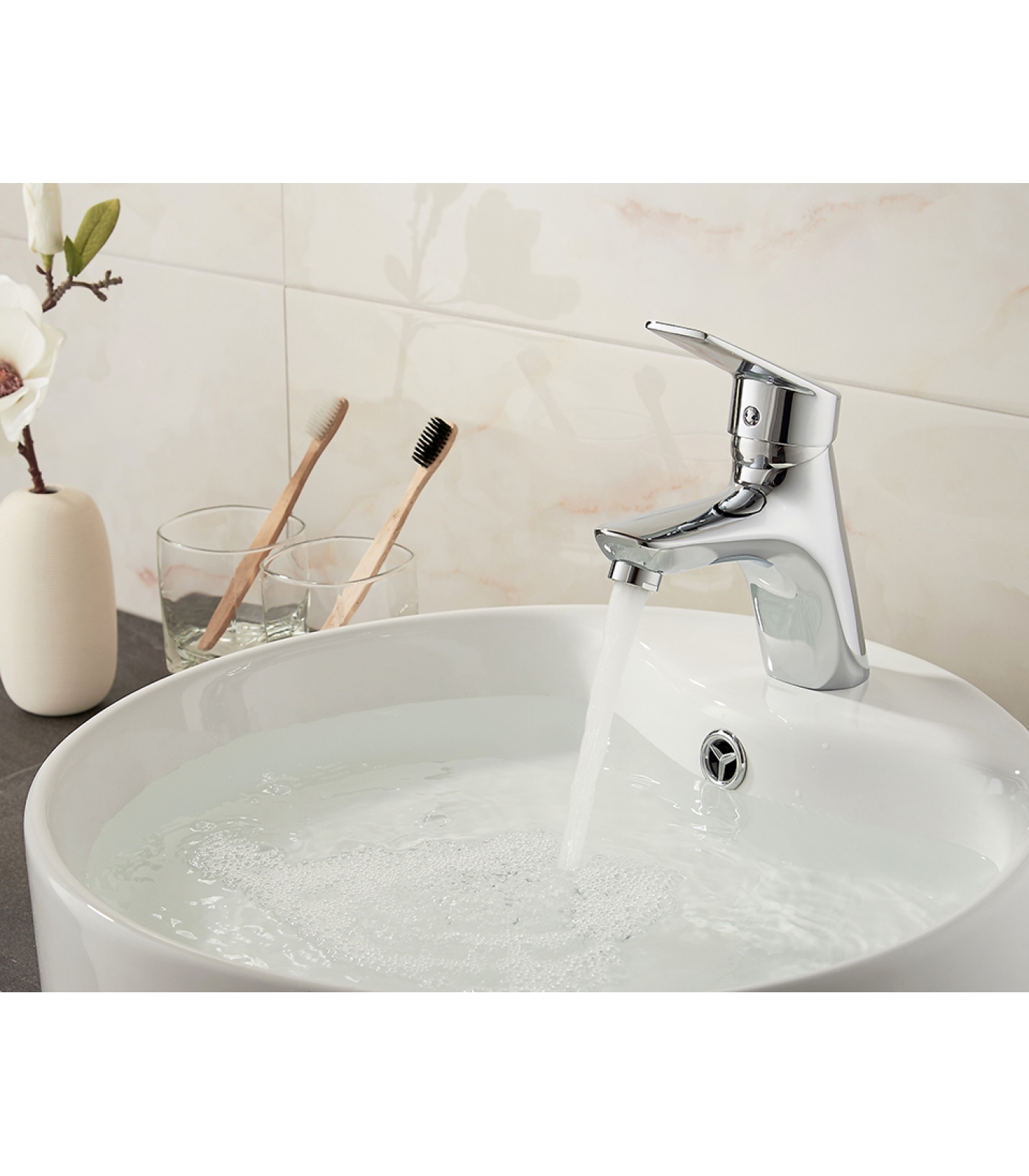 Смеситель для раковины Ledeme 1040L служит функциональным средством подачи воды определённой температуры и предназначен для установки на раковину (умывальник). Данная модель имеет короткий излив и компактную форму, за счёт чего идеально подходит для установки в ванной комнате. Изделие имеет прочный, долговечный латунный корпус, который отличается весьма продолжительным эксплуатационным ресурсом и стильное хромовое внешнее покрытие. Благодаря эргономичному управляющему элементу смесителя настройка температуры и интенсивности подачи не требует больших усилий. Вместе с тем, встроенный аэратор нормализует параметры подачи воды и смягчает напор.