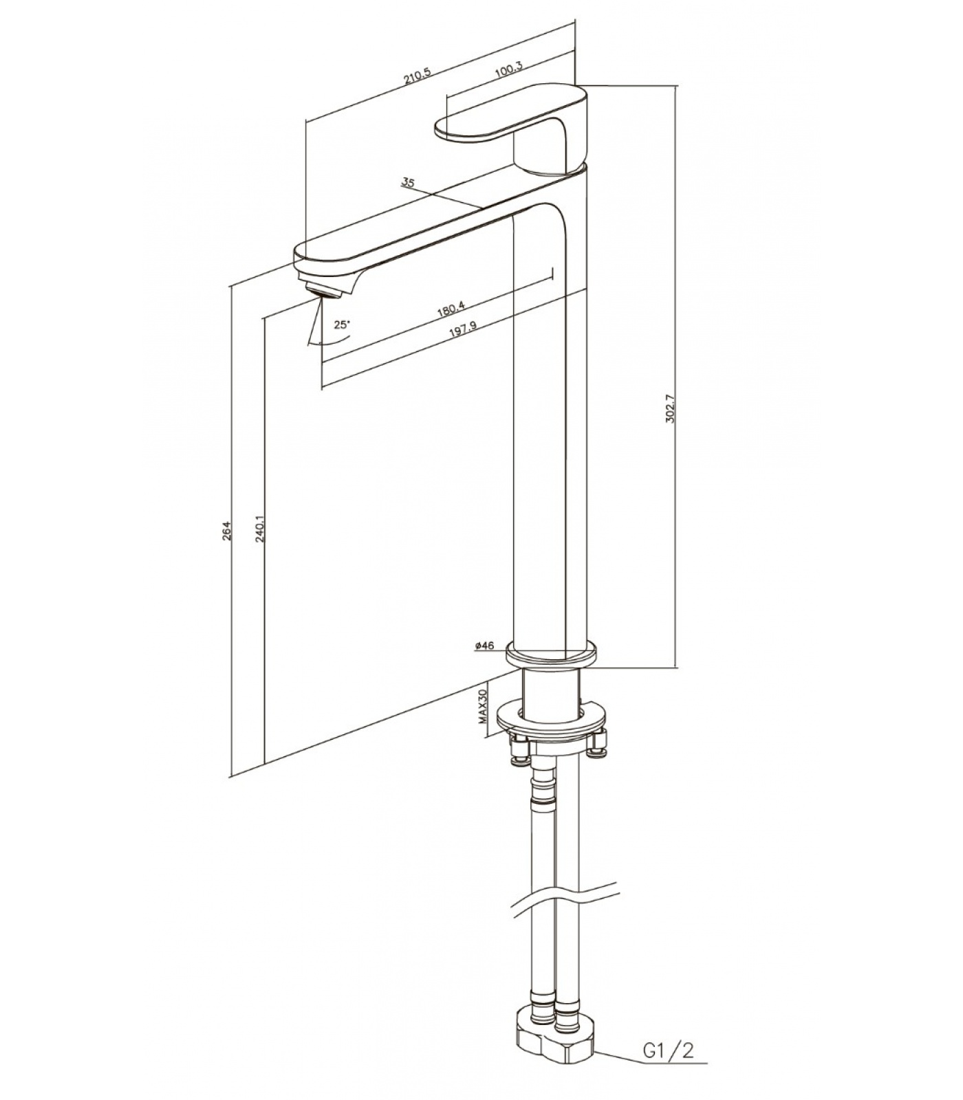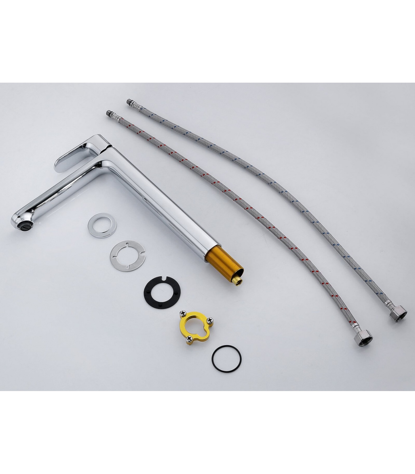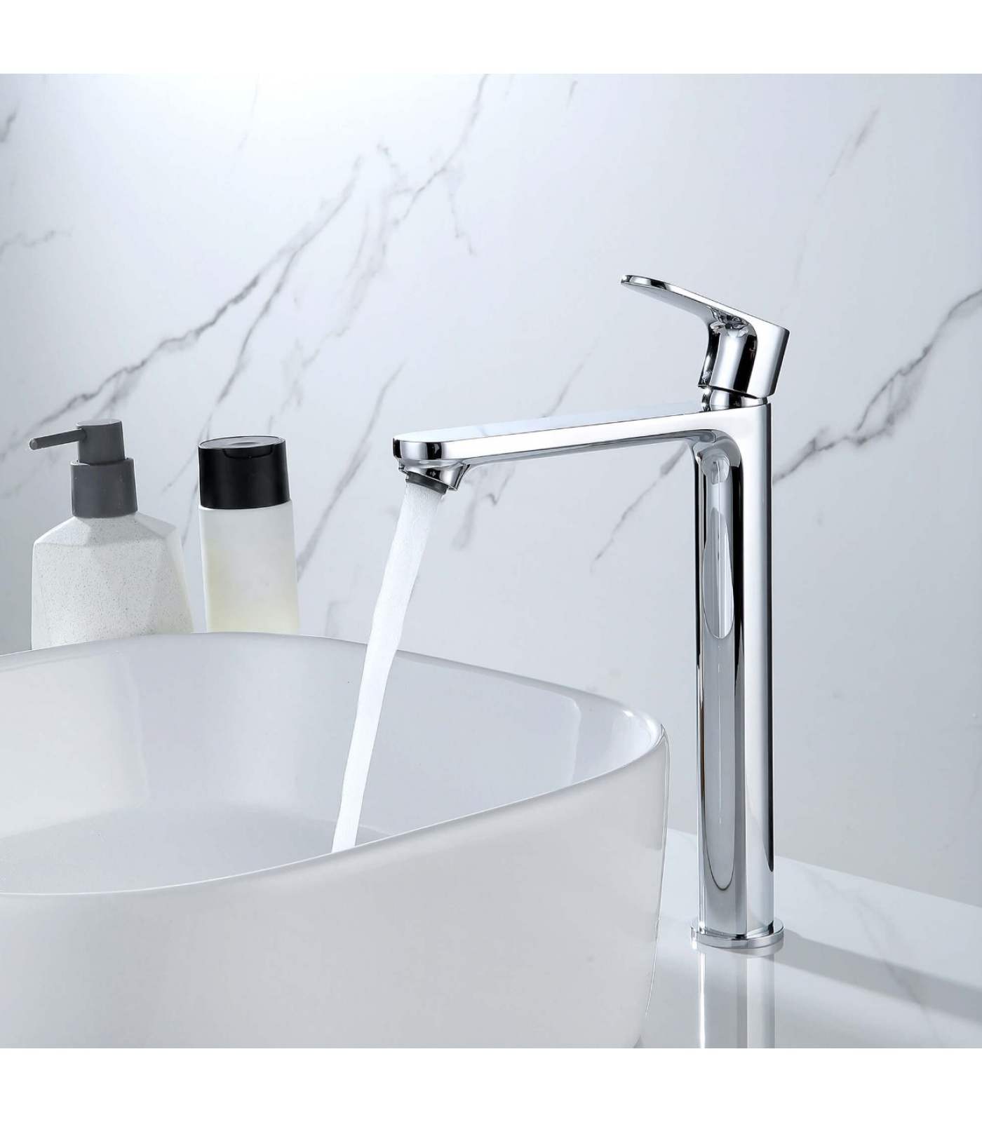AQUATEK AQ1904CR АЛЬФА смеситель для раковины высокий 245 без донного клапана