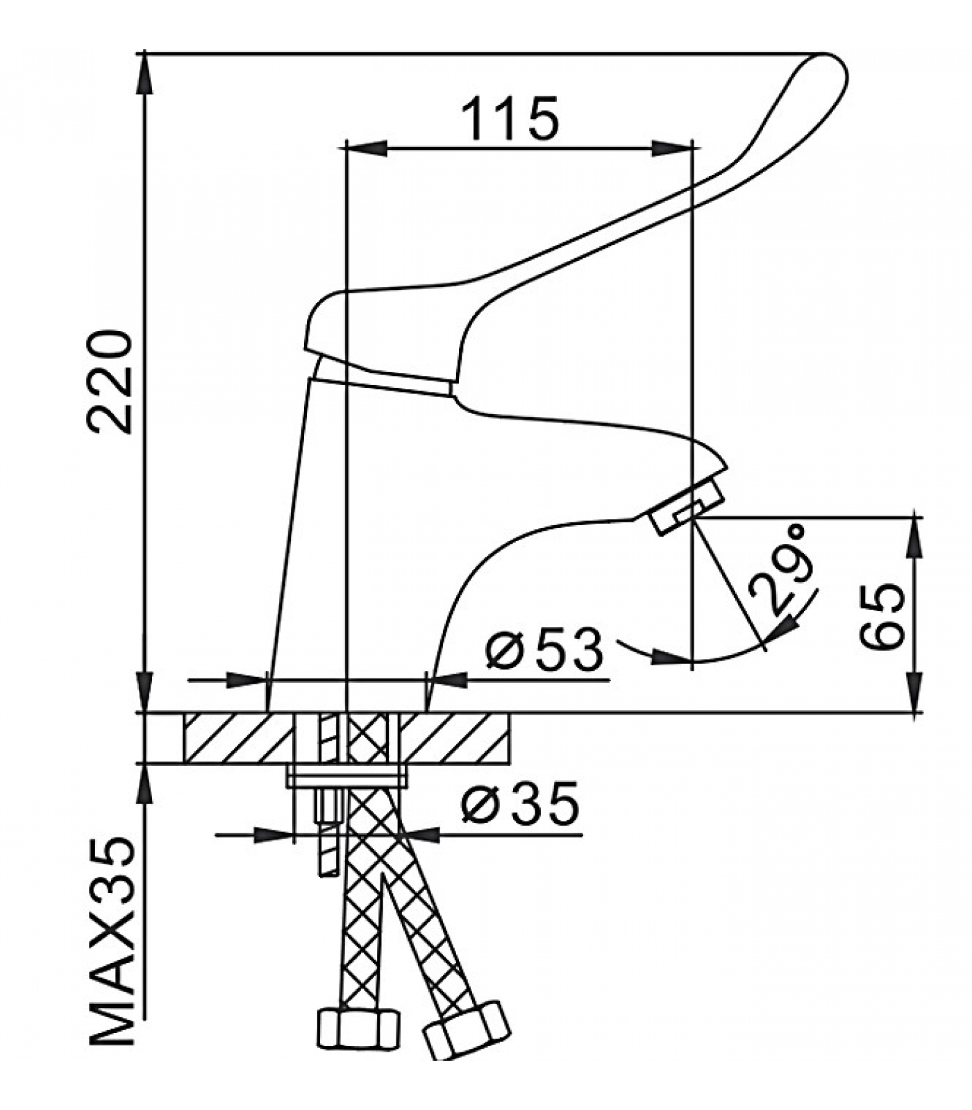 Главной отличительной особенностью хирургического смесителя, предназначенного для подачи воды и предотвращения вторичной контаминации микроорганизмами рук медицинского персонала, является наличие длинной рукоятки. Она имеет вид рычага с загнутым концом.