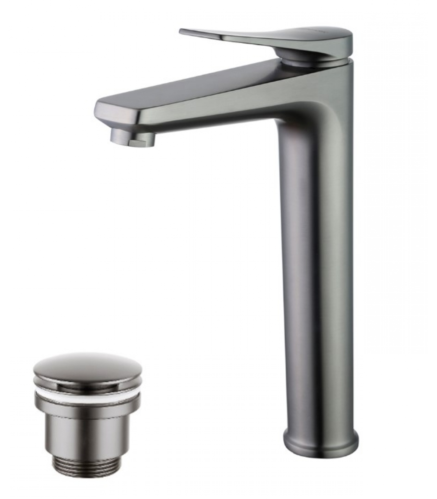 Смеситель для раковины Lemark Bronx LM3709GM высокий Г-излив, однорычажный, с донным клапананом Click/Clac, цвет - графит, Серия BRONX, предназначен для использования в ванных помещениях для подачи горячей и холодной воды. Серия Bronx выполнена в современном стиле. Модель оснащена донным клапаном Click-Clack и керамическим картриджем, обеспечивающим плавный ход рычага смесителя, контроль и точность при выборе напора и температуры воды. Аэратор с изменяемым углом подачи воды обеспечивает мягкую струю без брызг. Смеситель с высоким изливом для настольго монтажа для отдельно стоящих раковин. Изделие выполнено из высококачественной латуни, отличающейся прочностью, долговечностью и устойчивостью к перепадам температур.