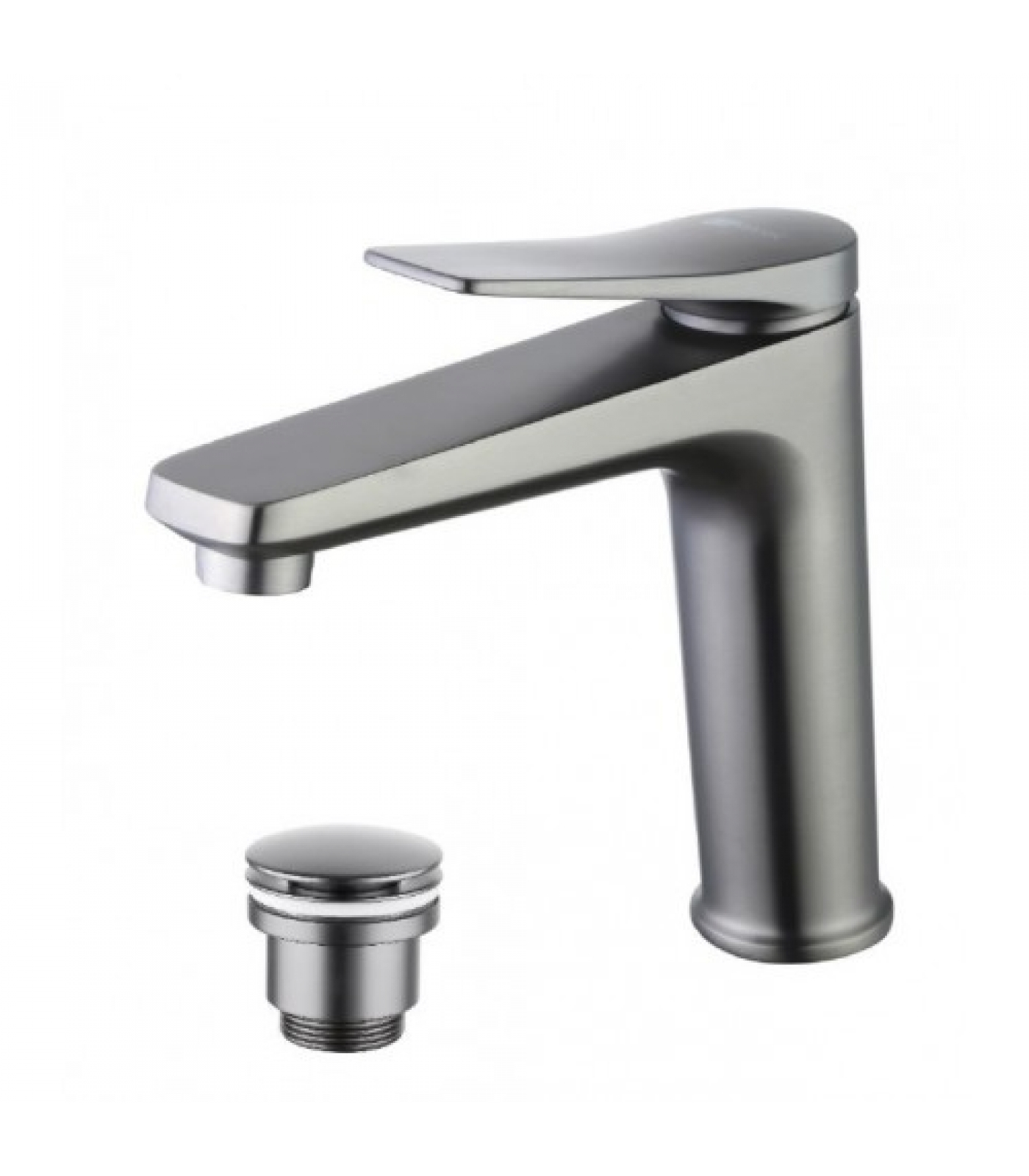 Смеситель для раковины Lemark Bronx LM3737GM, однорычажный, средний Г-излив, графит, донный клапан