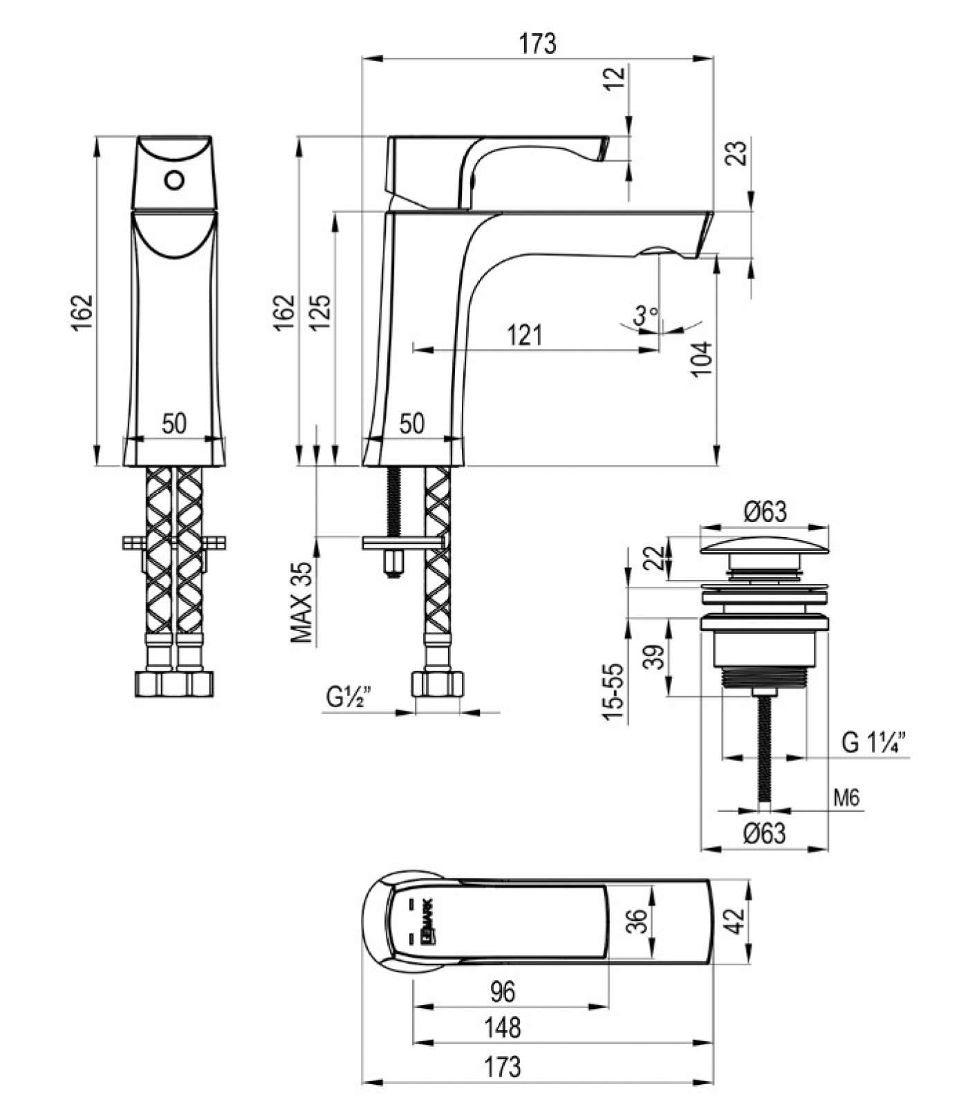 | Вращение излива | Фиксированный |