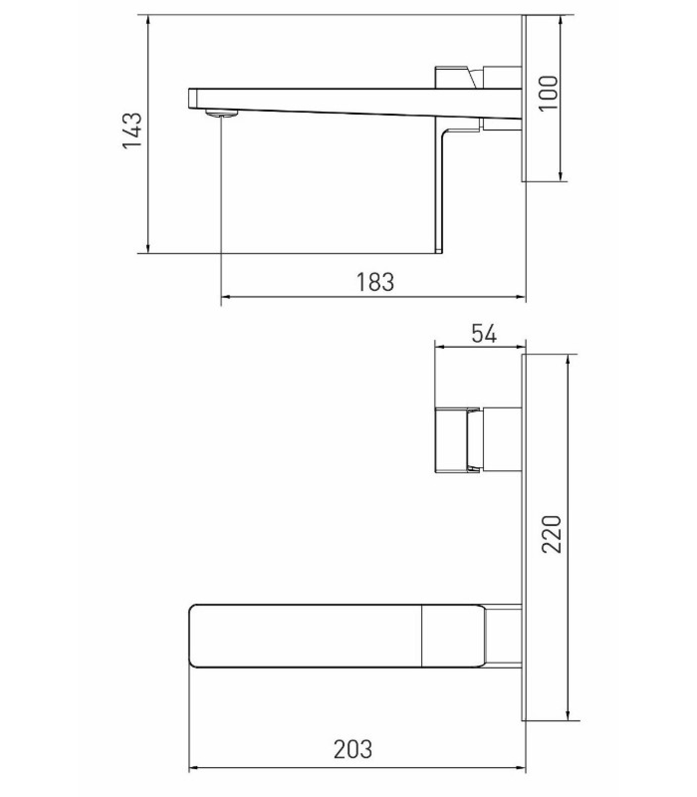 Описание: Однорычажный встраиваемый смеситель с коротким плоским изливом