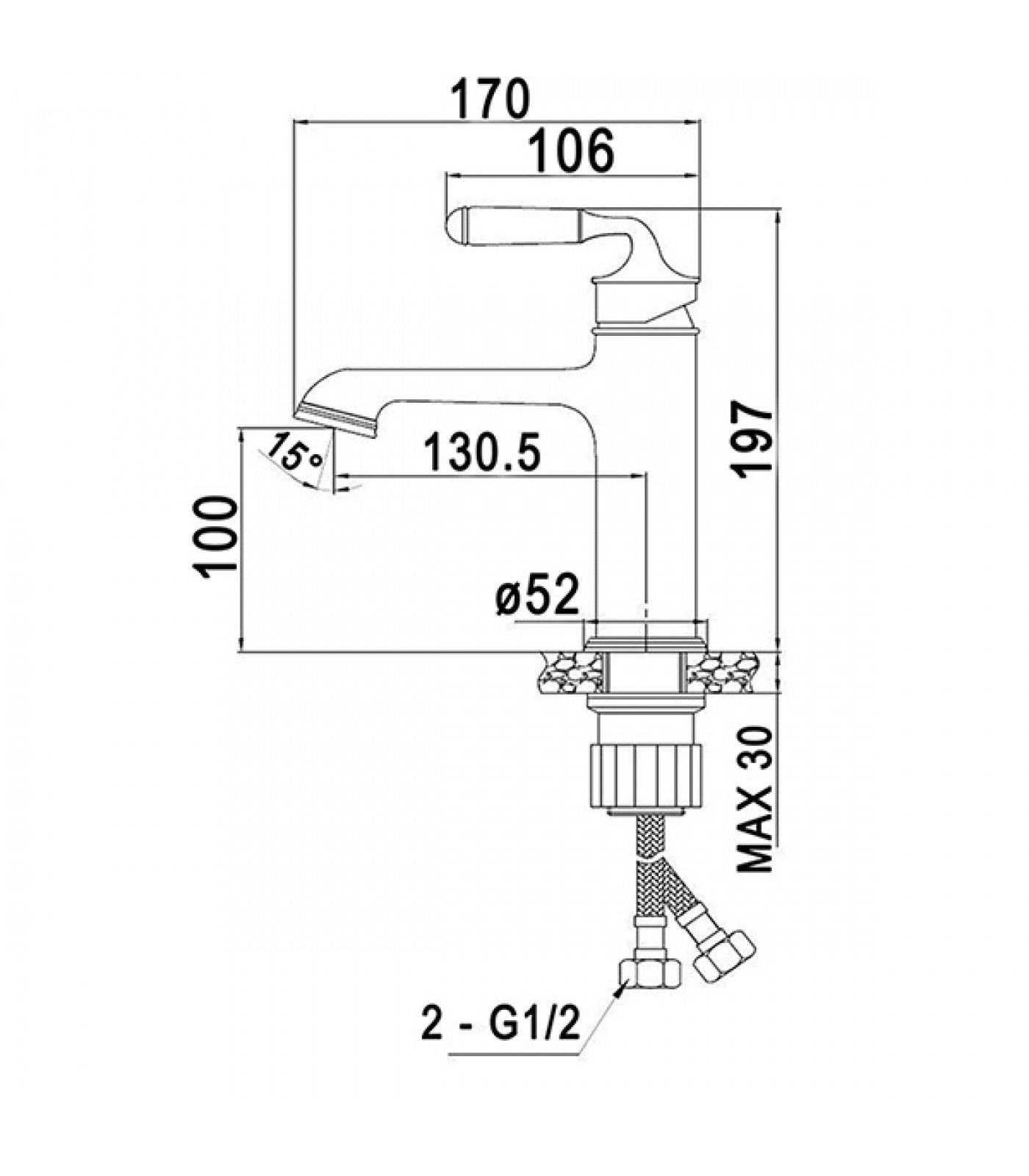 Смеситель подходит для умывальника в ванной, или небольшой раковины на кухне. Традиционный дизайн гармонично вписывается в современный интерьер.