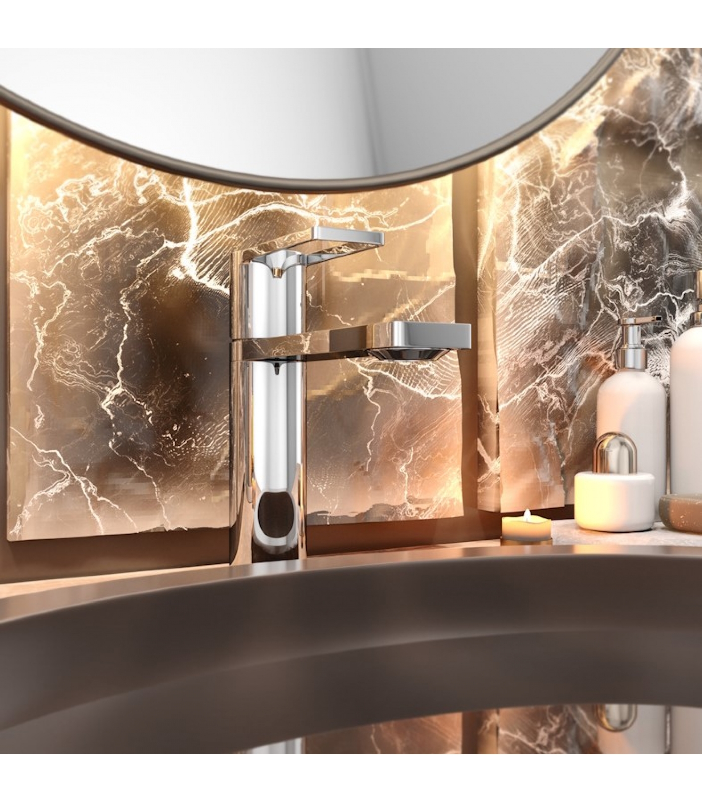 Смесители коллекции GALACTIK изготовлены из высококачественной латуни и покрыты многослойным хромированным покрытием.