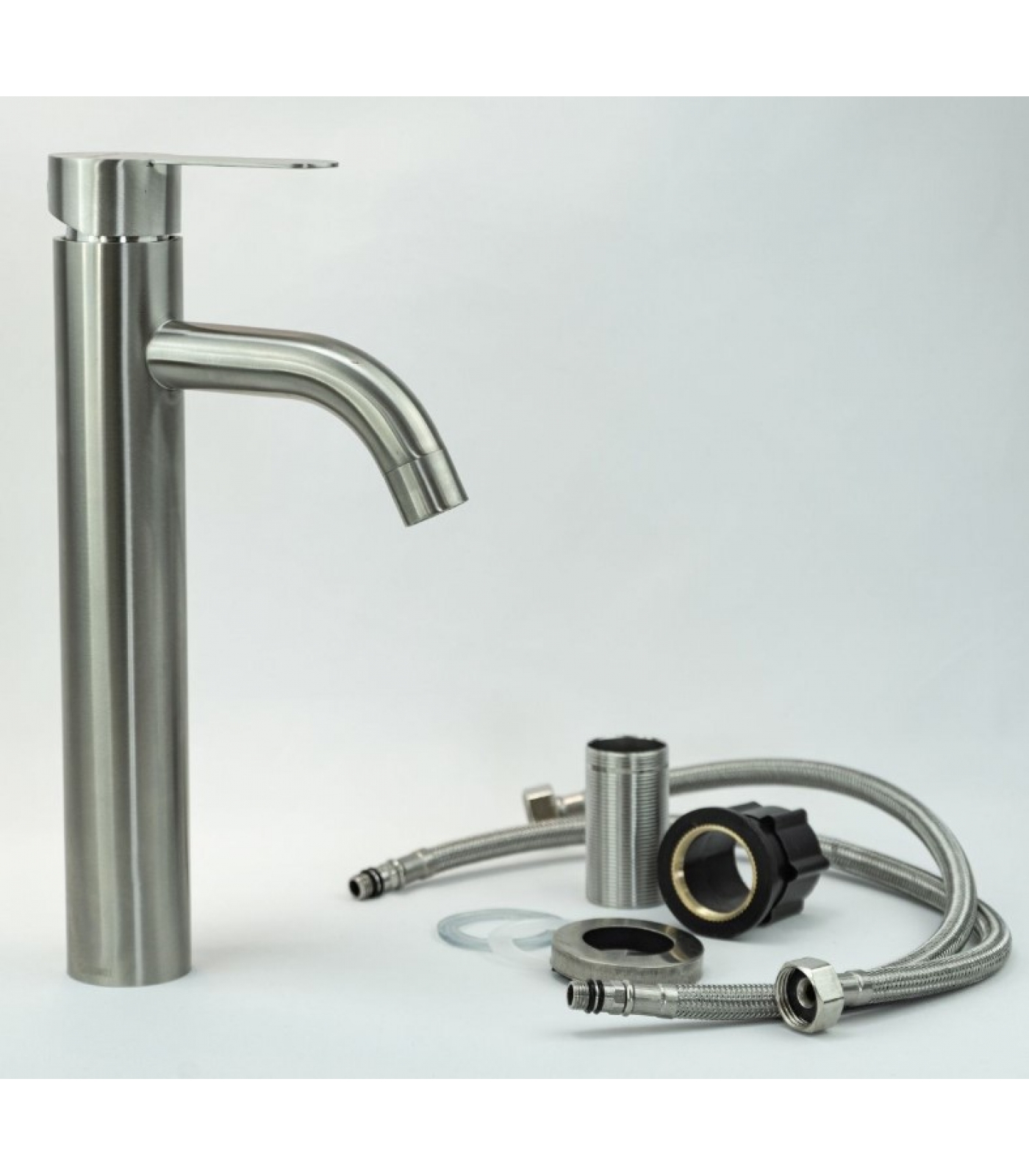 Смеситель для умывальника Fmark FS8211, высокий излив, однорычажный, сатин